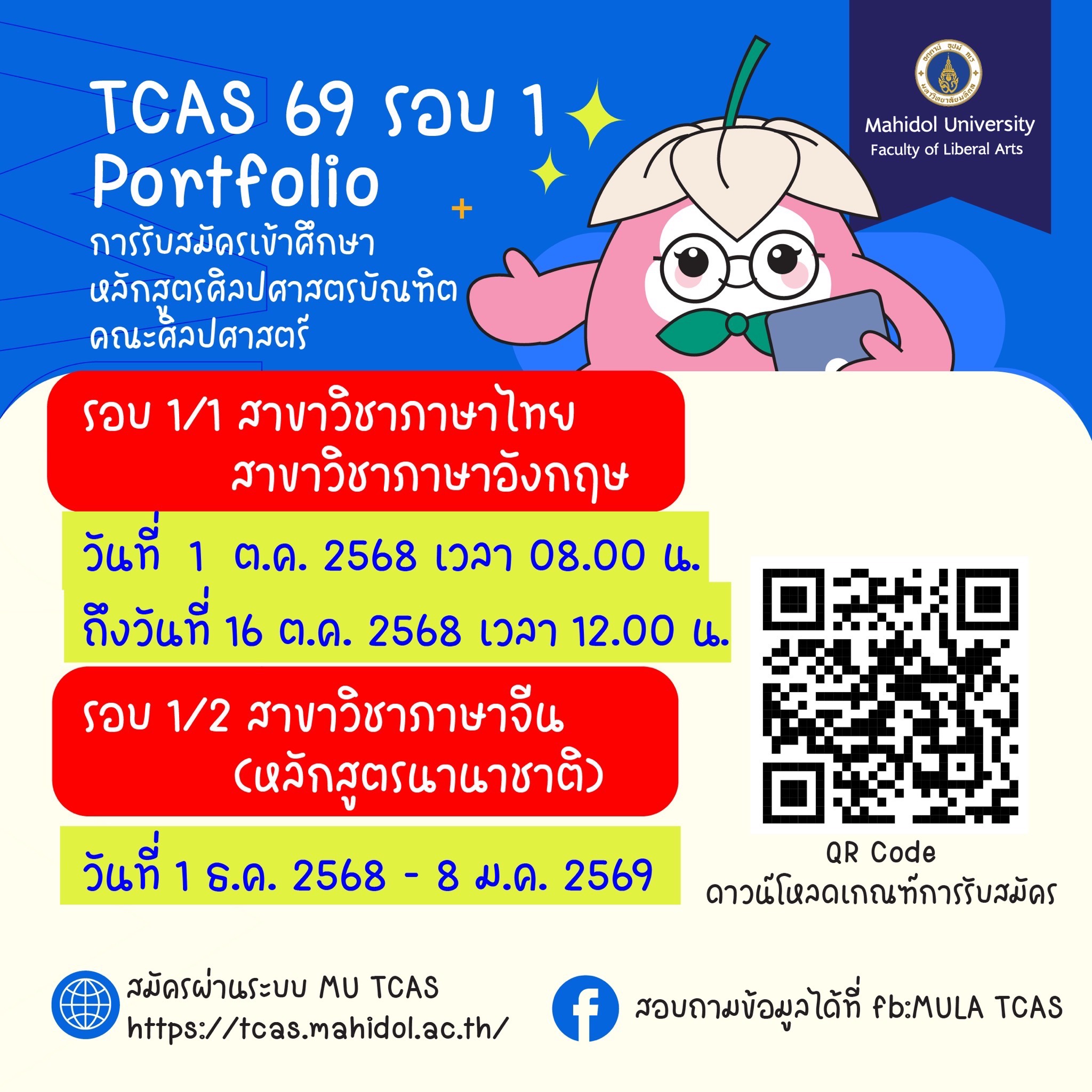 เปิดรับสมัครนักศึกษา ประจำปีการศึกษา 2569 รอบ Portfolio