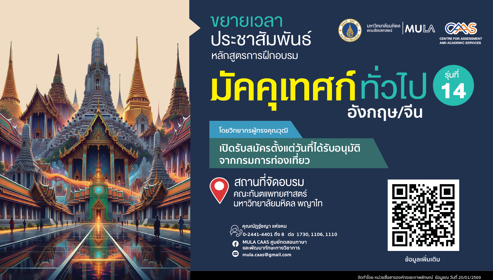 หลักสูตรศิลปศาสตรมหาบัณฑิต สาขาวิชาการจัดการการท่องเที่ยวเชิงสุขภาพ ธรรมชาติและวัฒนธรรม คณะศิลปศาสตร์ มหาวิทยาลัยมหิดล เปิดรายวิชาสำหรับบุคคลทั่วไป MAP-C Program (ภาคพิเศษ) ปีการศึกษา 2568