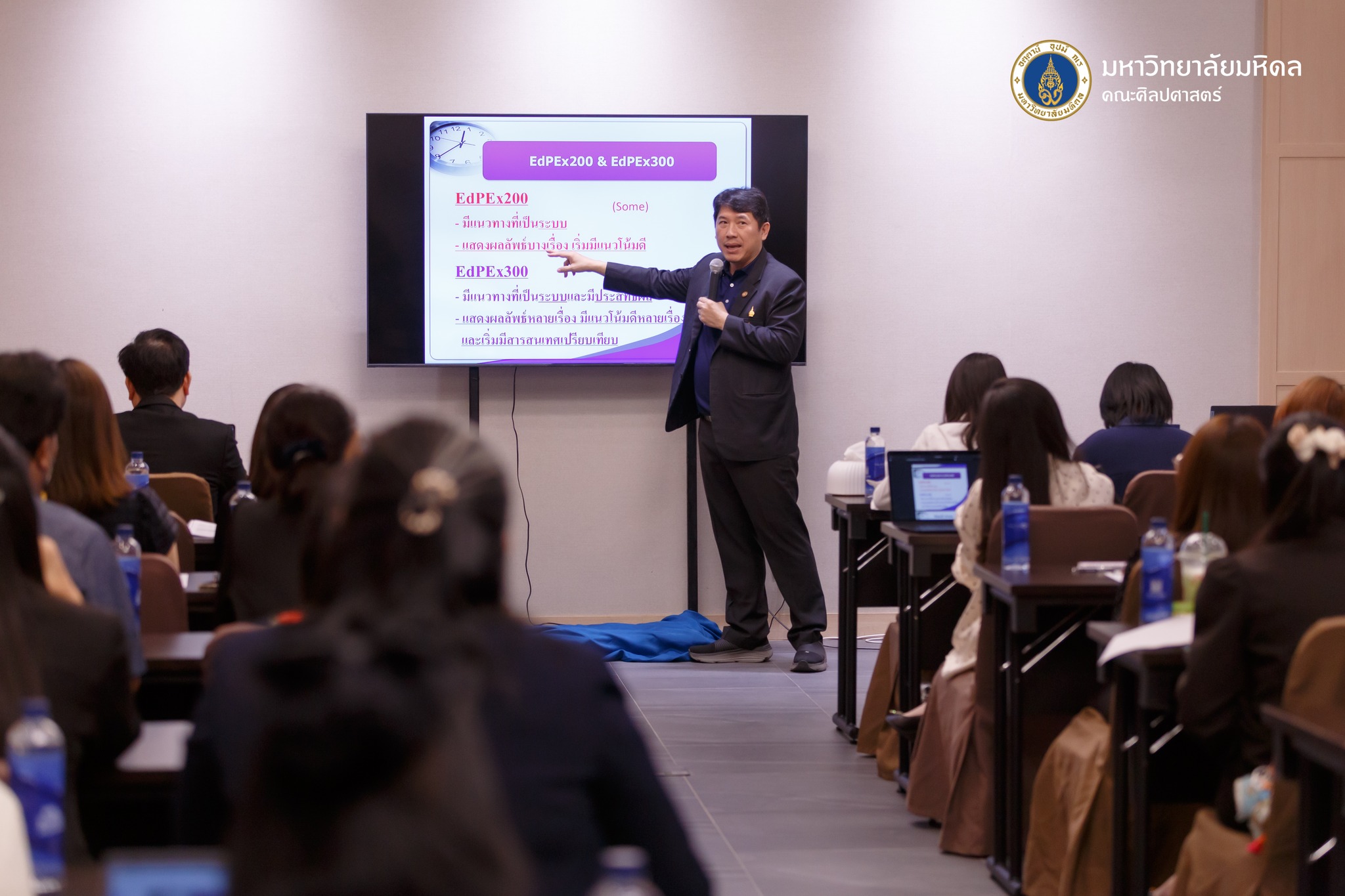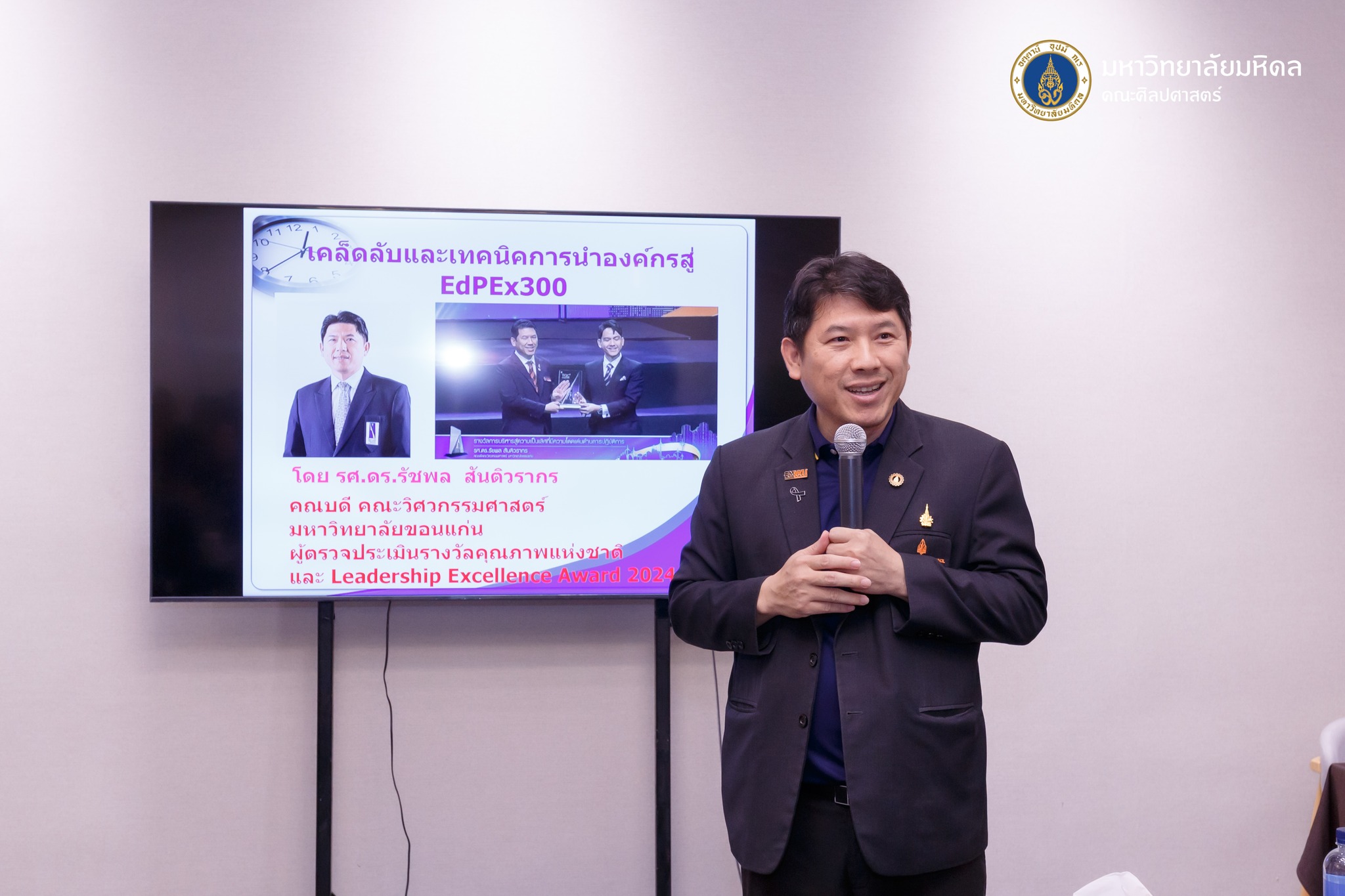 ข่าว ประจำปี 2569 08/01/2026 admin วันที่ 8 มกราคม 2569 คณะศิลปศาสตร์ จัดการอบรมเรื่อง “เทคนิคและเคล็ดลับ การนำองค์กรมุ่งสู่ EdPEx 300” ณ ศาลายา วัน โฮเทล แอนด์ เซอร์วิซ อพาร์ตเมนต์ ซอยตั้งสิน จ.นครปฐม โดยได้รับเกียรติจากรองศาสตราจารย์ ดร.รัชพล สันติวรากร คณบดีคณะวิศวกรรมศาสตร์ มหาวิทยาลัยขอนแก่น มาเป็นวิทยากรบรรยายให้ความรู้พิธีเปิดโดยผู้ช่วยศาสตราจารย์ ดร.อภิวิชญ์ เลี้ยงอิสสระ คณบดีคณะศิลปศาสตร์ การอบรมดังกล่าวมีวัตถุประสงค์เพื่อให้บุคลากรคณะศิลปศาสตร์ ได้เสริมสร้างความรู้ความเข้าใจในหลักเกณฑ์ EdPEx รวมถึงเทคนิคการนำไปประยุกต์ใช้ เพื่อยกระดับคณะสู่ความเป็นเลิศอย่างยั่งยืน โดยมีกำหนดจัดขึ้นระหว่างวันที่ 8 – 9 มกราคม พ.ศ.2569