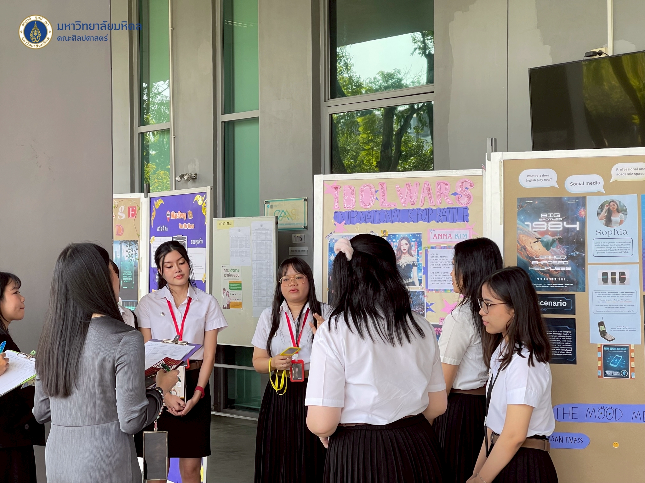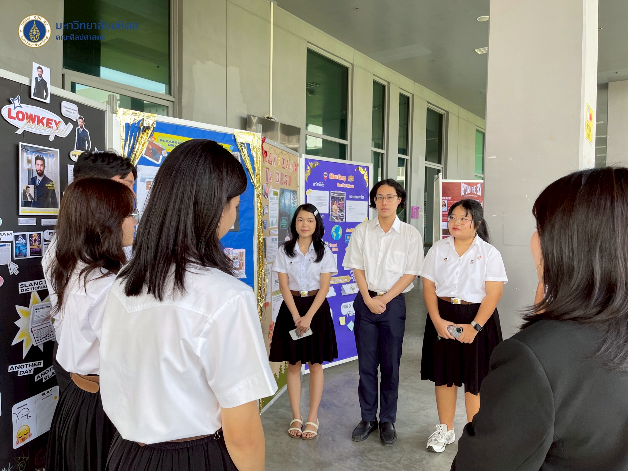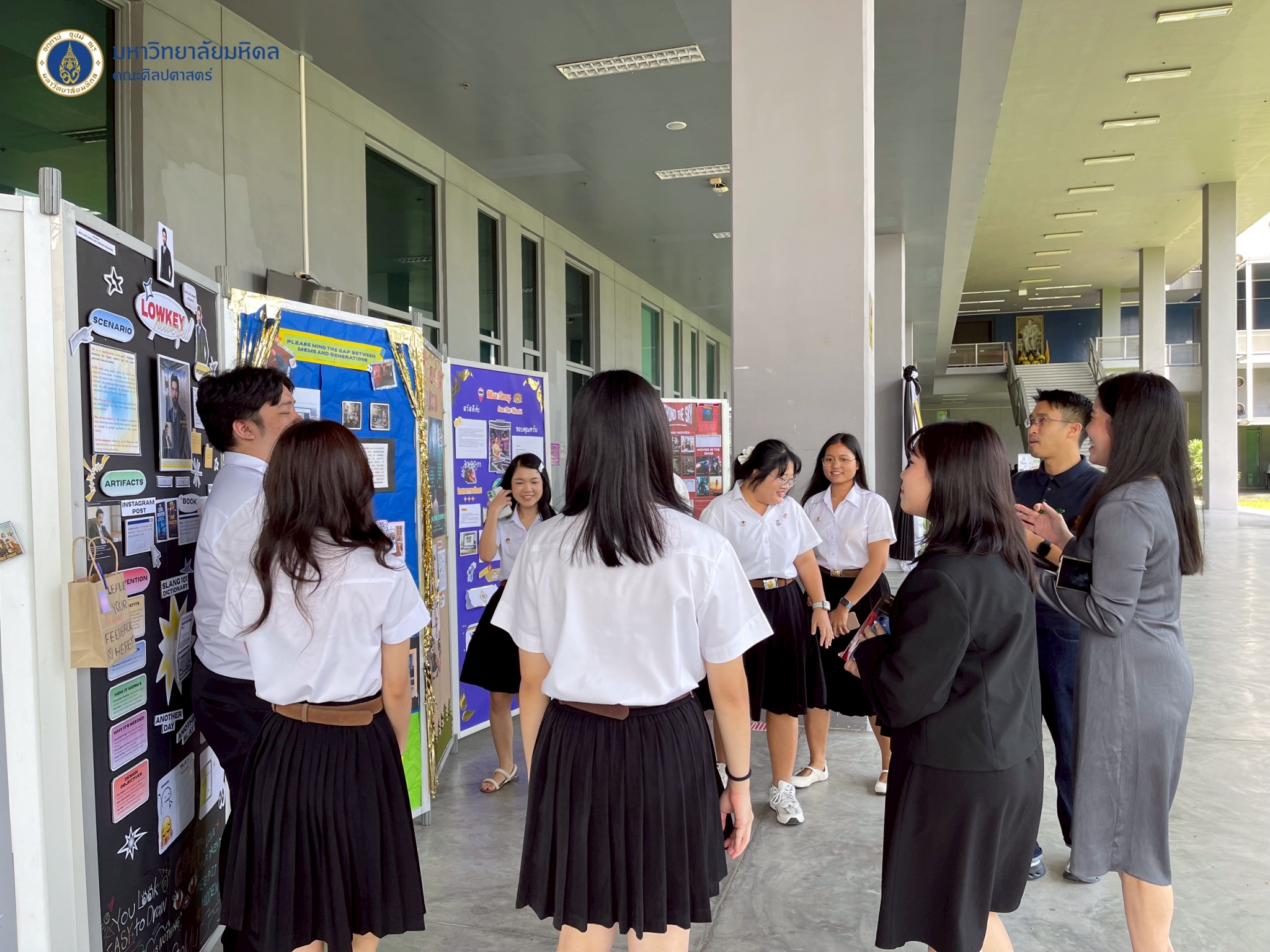 วันที่ 26 พฤศจิกายน 2568 นักศึกษาชั้นปีที่ 4 หลักสูตรศิลปศาสตรบัณฑิต สาขาวิชาภาษาอังกฤษ ได้จัดกิจกรรมนำเสนอผลงานในหัวข้อ Futures Exhibition: Designing for the Futures of English ซึ่งเป็นส่วนหนึ่งของรายวิชา LAEN451 Varieties of English โดยมีอาจารย์ ดร.อนุชยาน์ มนทการติวงศ์ อาจารย์ผู้รับผิดชอบรายวิชา และประธานหลักสูตรศิลปศาสตรบัณฑิต สาขาวิชาภาษาอังกฤษ เป็นผู้ดูแลการจัดกิจกรรมและให้การสนับสนุนด้านวิชาการตลอดการดำเนินงานของนักศึกษา