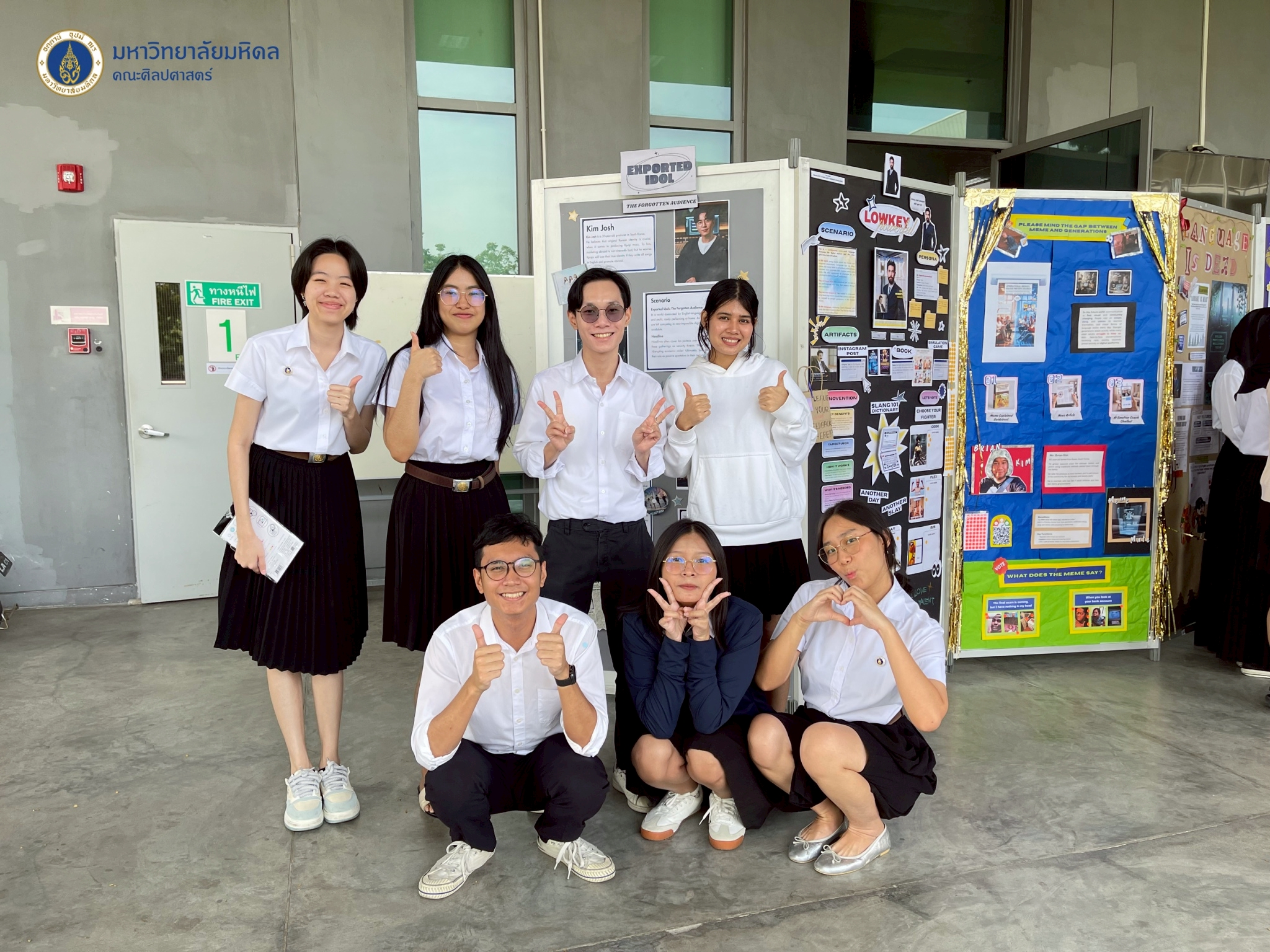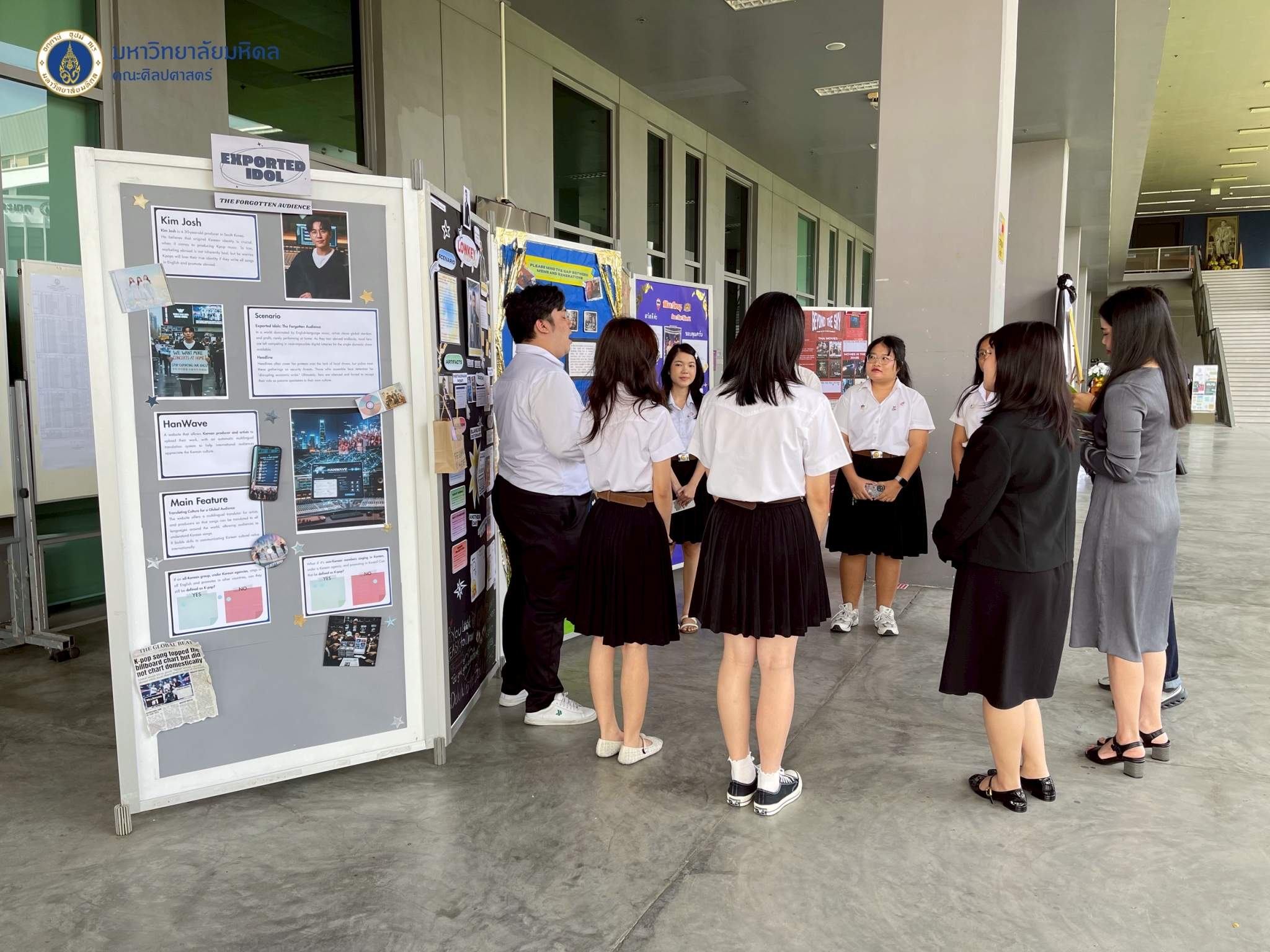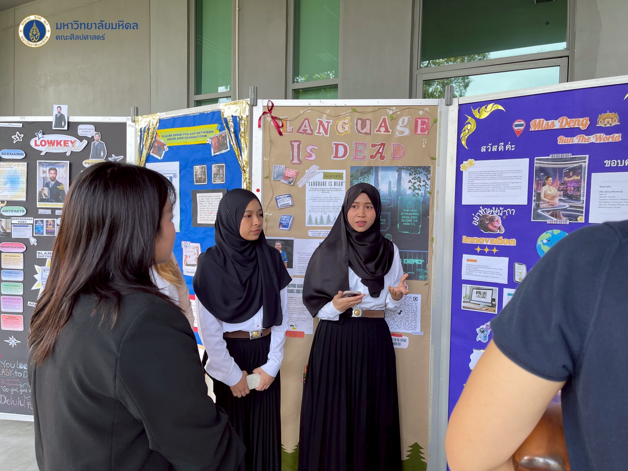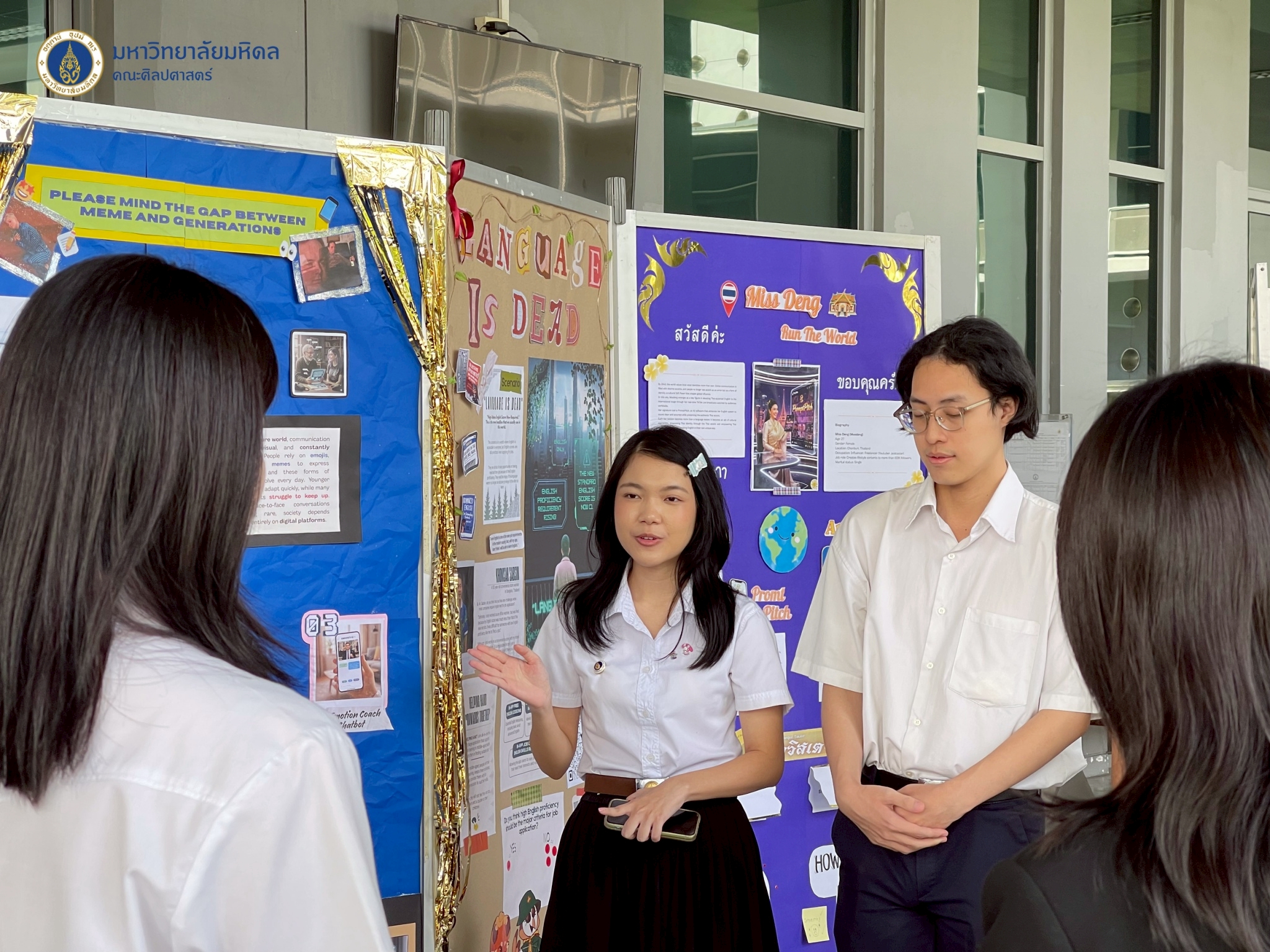วันที่ 26 พฤศจิกายน 2568 นักศึกษาชั้นปีที่ 4 หลักสูตรศิลปศาสตรบัณฑิต สาขาวิชาภาษาอังกฤษ ได้จัดกิจกรรมนำเสนอผลงานในหัวข้อ Futures Exhibition: Designing for the Futures of English ซึ่งเป็นส่วนหนึ่งของรายวิชา LAEN451 Varieties of English โดยมีอาจารย์ ดร.อนุชยาน์ มนทการติวงศ์ อาจารย์ผู้รับผิดชอบรายวิชา และประธานหลักสูตรศิลปศาสตรบัณฑิต สาขาวิชาภาษาอังกฤษ เป็นผู้ดูแลการจัดกิจกรรมและให้การสนับสนุนด้านวิชาการตลอดการดำเนินงานของนักศึกษา