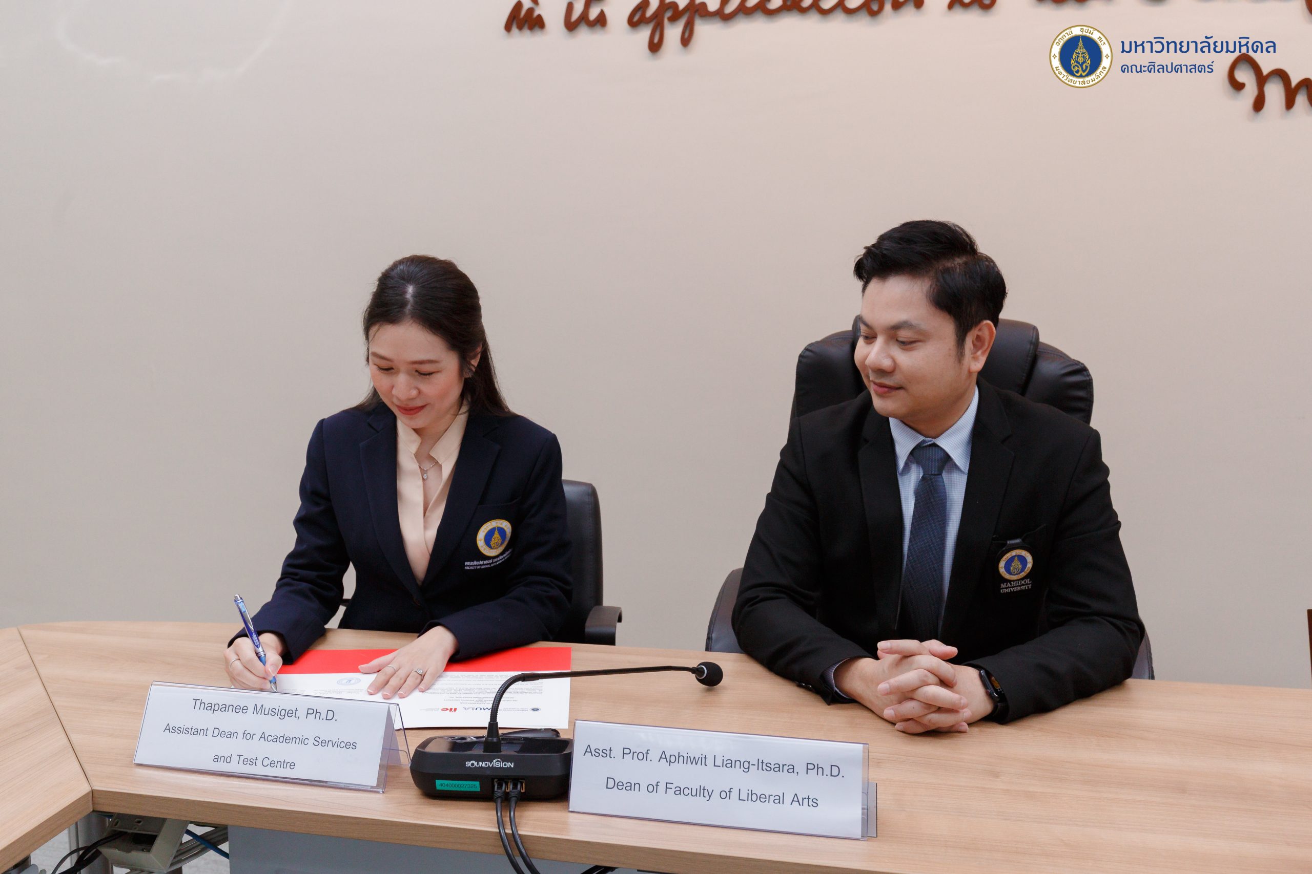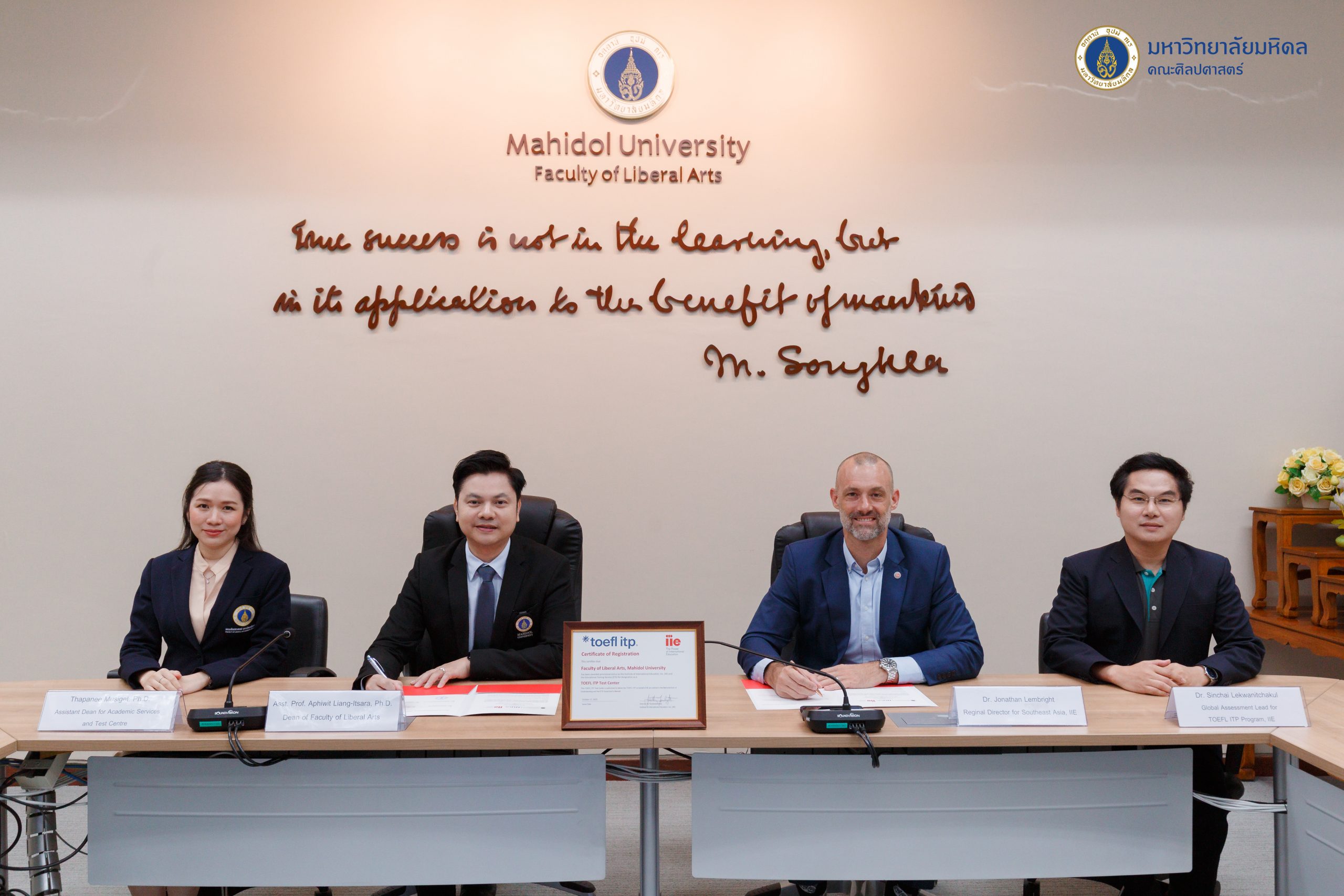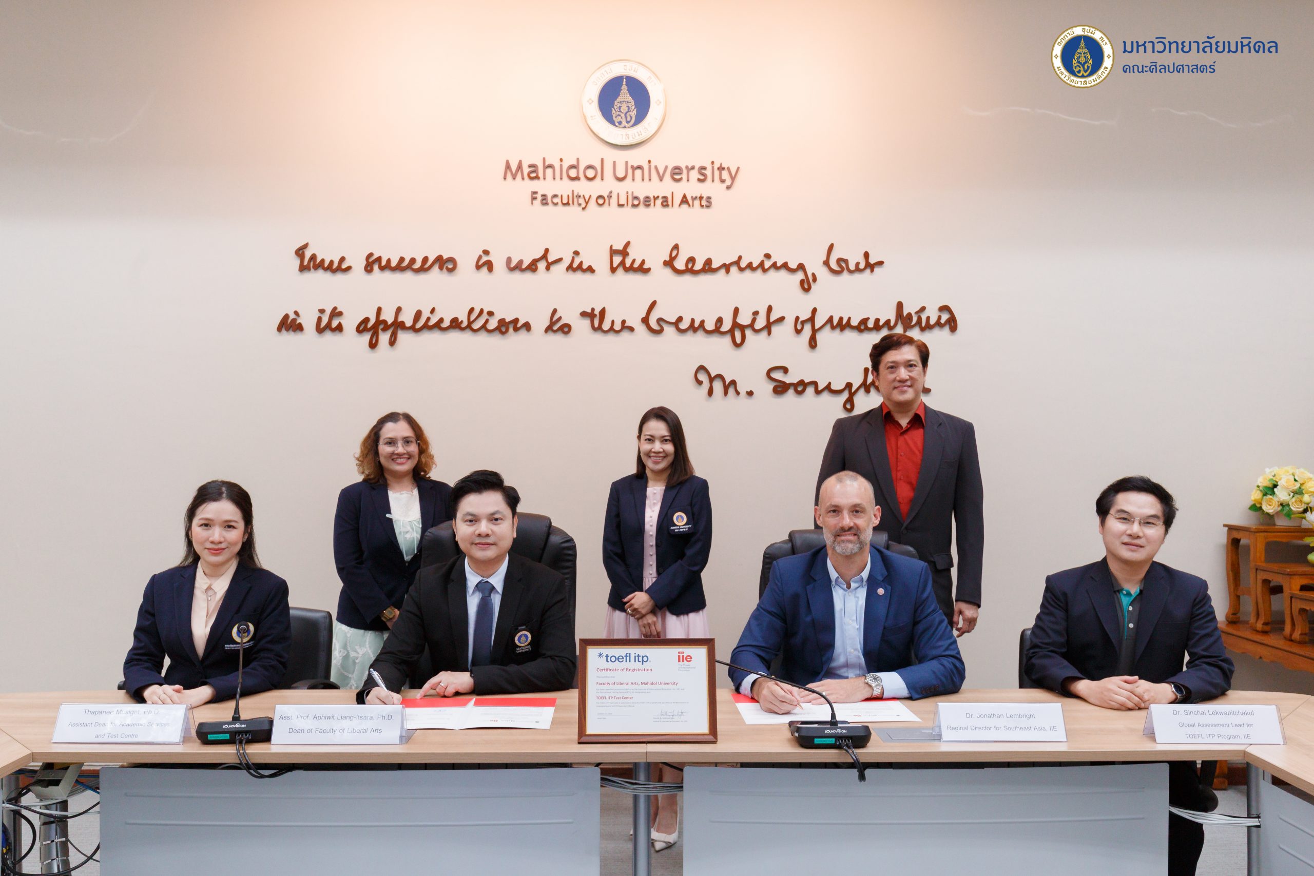 วันที่ 17 ตุลาคม 2568 คณะศิลปศาสตร์ จัดพิธีลงนาม Letter of Agreement (LOA) ระหว่าง คณะศิลปศาสตร์ มหาวิทยาลัยมหิดล กับ Institute of International Education (IIE) ในการจัดตั้งศูนย์ทดสอบ TOEFL ITP ณ คณะศิลปศาสตร์ มหาวิทยาลัยมหิดล