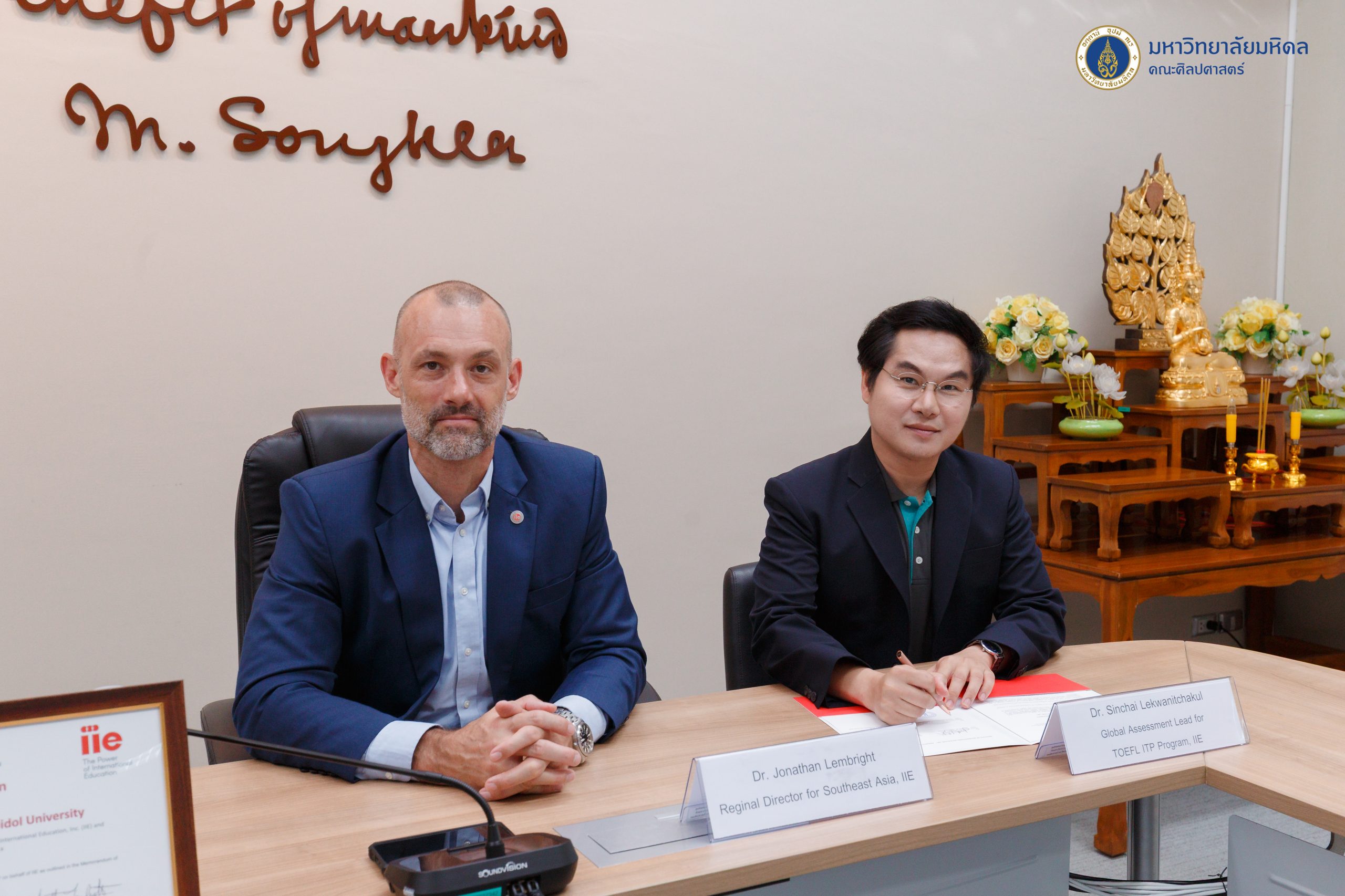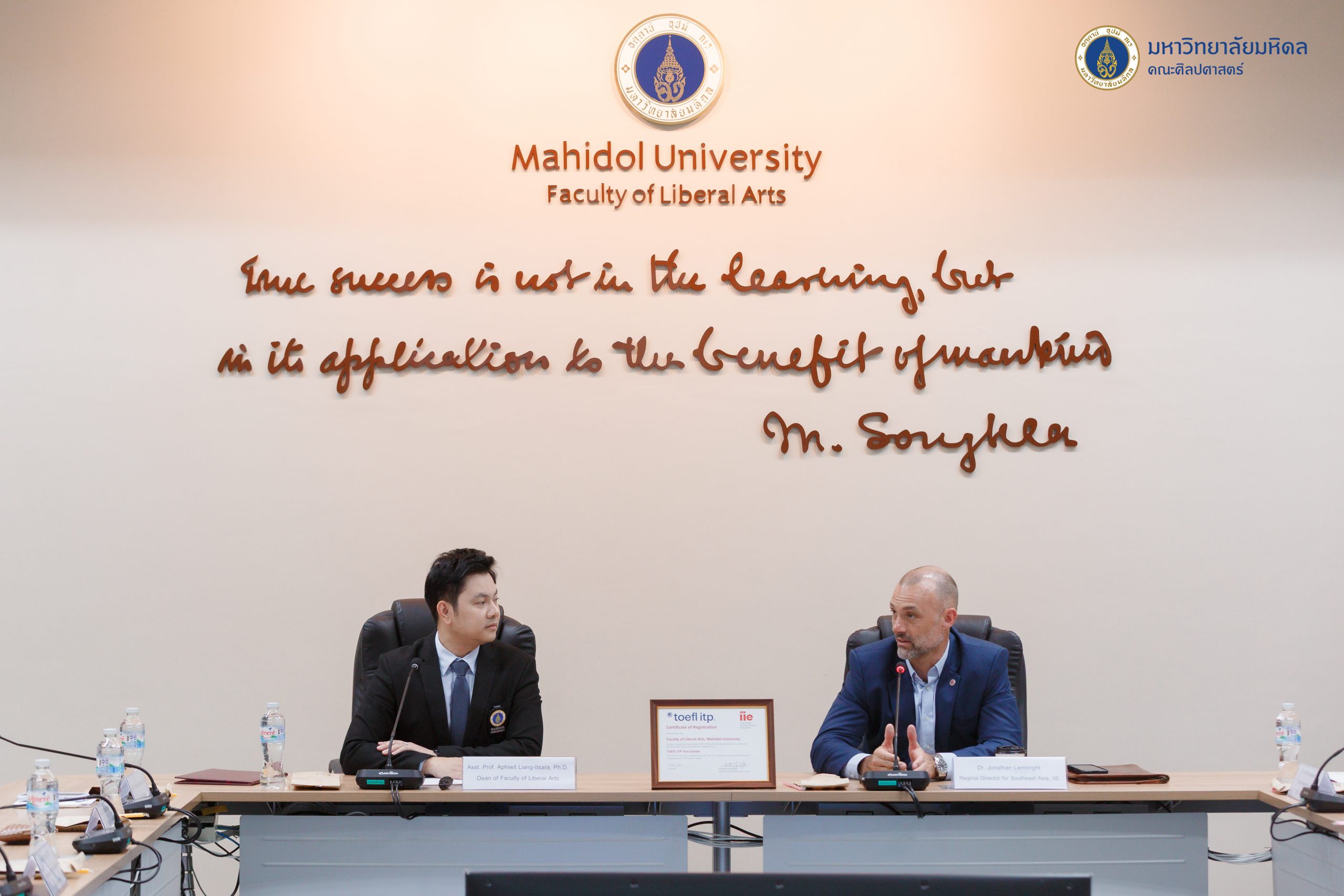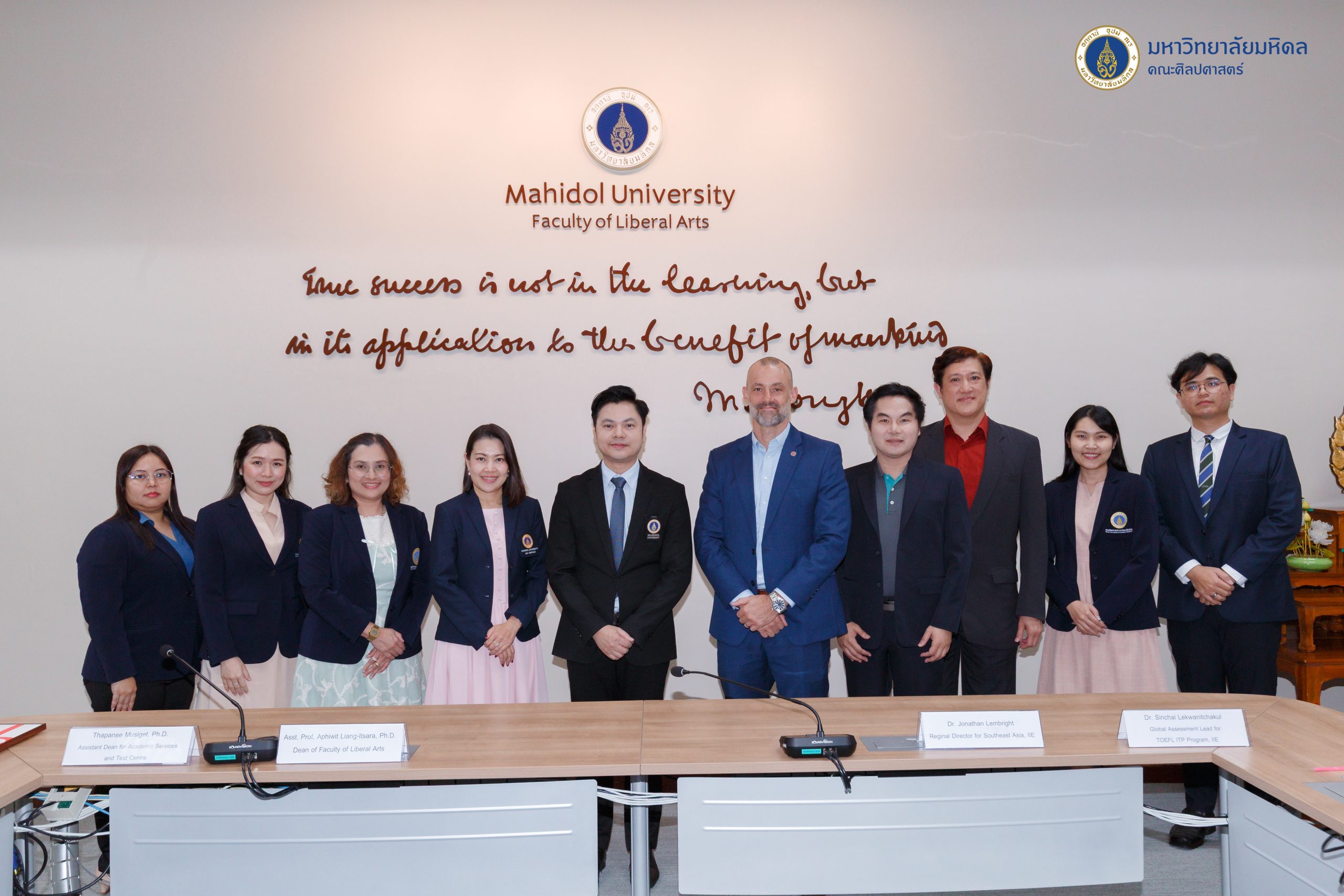 วันที่ 17 ตุลาคม 2568 คณะศิลปศาสตร์ จัดพิธีลงนาม Letter of Agreement (LOA) ระหว่าง คณะศิลปศาสตร์ มหาวิทยาลัยมหิดล กับ Institute of International Education (IIE) ในการจัดตั้งศูนย์ทดสอบ TOEFL ITP ณ คณะศิลปศาสตร์ มหาวิทยาลัยมหิดล