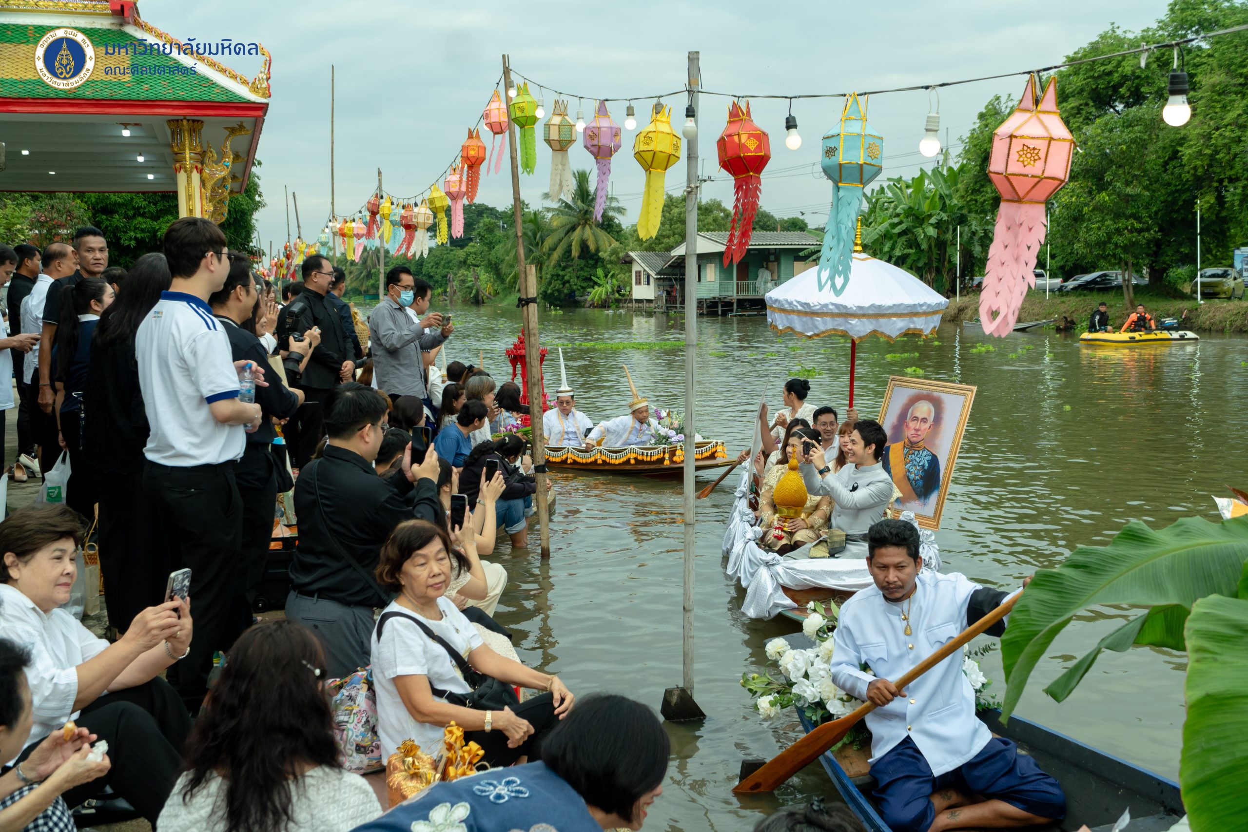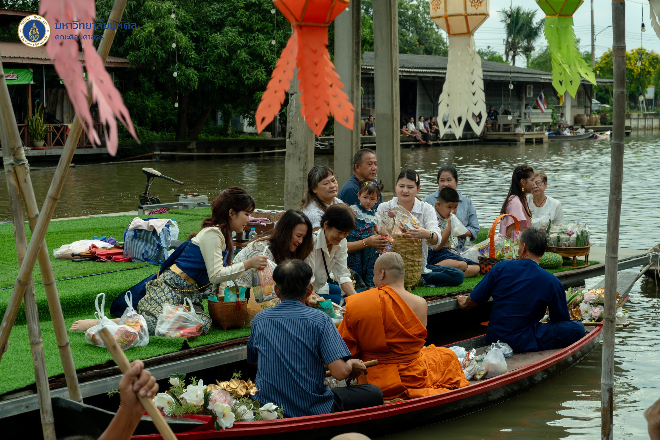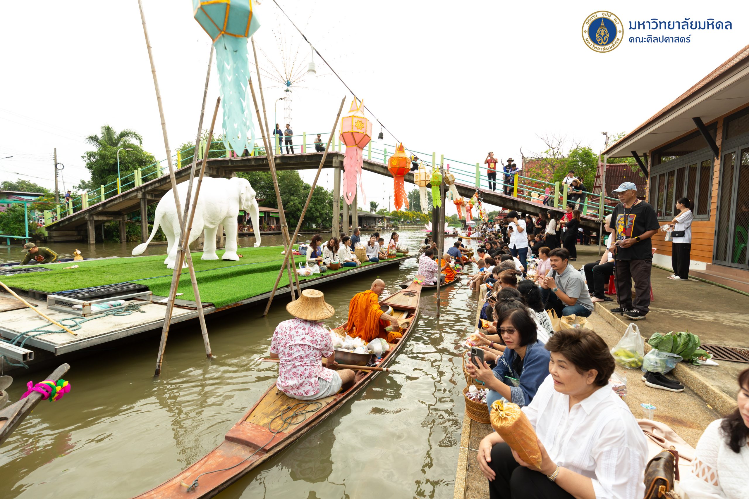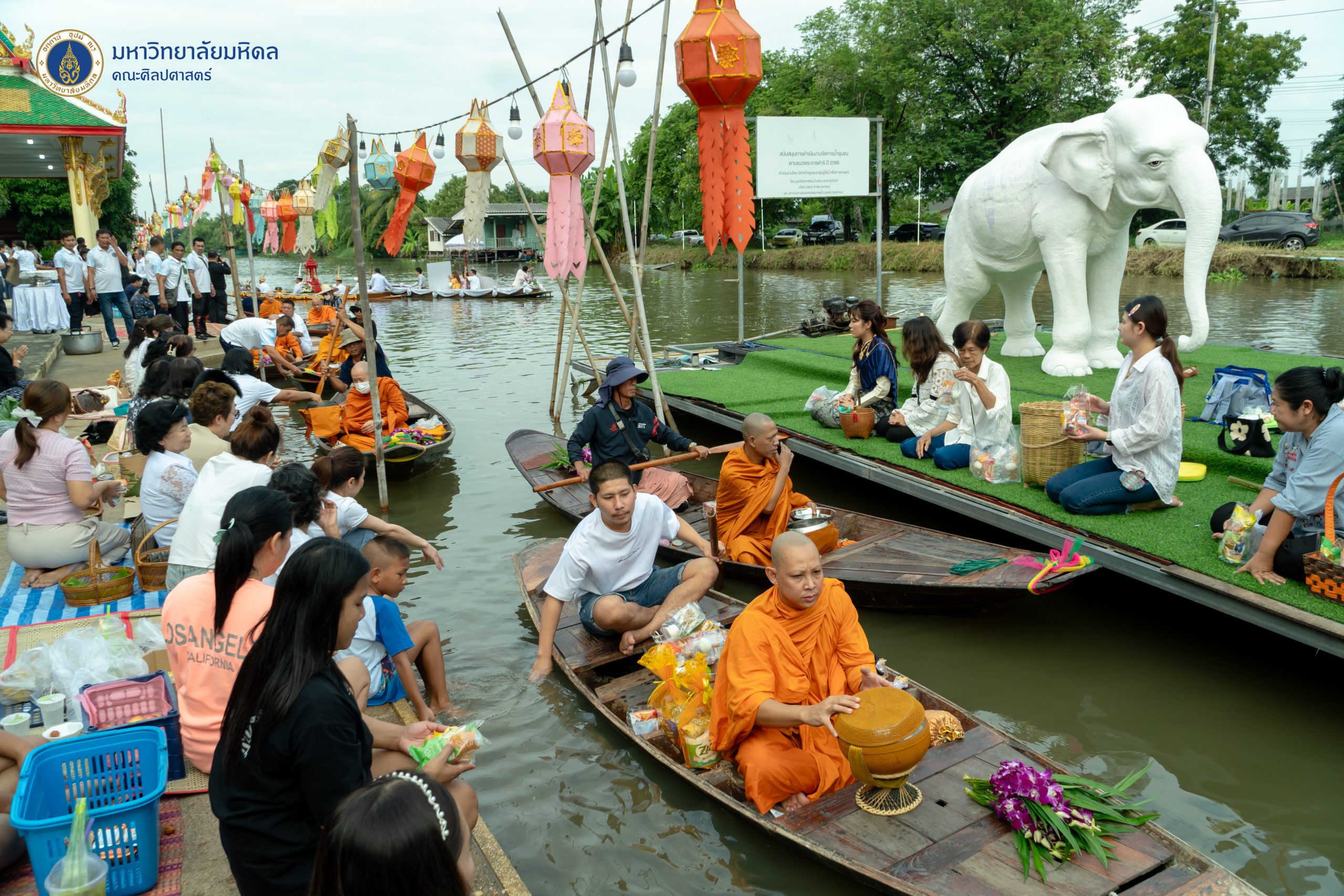 ข่าว ประจำปี 2568 05/11/2025 admin วันที่ 5 พฤศจิกายน 2568 คณะศิลปศาสตร์ มหาวิทยาลัยมหิดล นำโดยผู้ช่วยศาสตราจารย์ ดร.ณัฐกาญจน์ นาคนวล รองคณบดีฝ่ายวิจัยและวิชาการเพื่อสังคม พร้อมด้วยรองศาสตราจารย์ ดร.อภิลักษณ์ เกษมผลกูล ประธานศูนย์ทรรศน์ศึกษา คณาจารย์ และเจ้าหน้าที่ เข้าร่วมงานประเพณีตักบาตรท้องน้ำและลอยกระทง ประจำปี 2568 ณ คลองมหาสวัสดิ์ วัดสุวรรณาราม ตำบลศาลายา อำเภอพุทธมณฑล จังหวัดนครปฐมการจัดงานครั้งนี้เป็นความร่วมมือระหว่างวัดสุวรรณาราม องค์การบริหารส่วนตำบลศาลายา และหน่วยงานทั้งภาครัฐและเอกชนในตำบลศาลายา เพื่อสืบสานและอนุรักษ์ขนบธรรมเนียมประเพณีไทยอันงดงาม โดยภายในงานมีกิจกรรมหลากหลาย อาทิ ประเพณีตักบาตรท้องน้ำอันเป็นเอกลักษณ์ของชุมชนริมคลองมหาสวัสดิ์ กิจกรรมเสวนา “ภาพเก่าเล่าเรื่องศาลายา” โดยรองศาสตราจารย์ ดร.อภิลักษณ์ เกษมผลกูล ประธานศูนย์สยามทรรศน์ศึกษา และคุณโสภณ เล่าอุย ที่มาร่วมบอกเล่าเรื่องราวและวิถีชีวิตของชุมชนผ่านภาพถ่ายเก่าอันทรงคุณค่านอกจากนี้ ยังมีกิจกรรมร่วมทำกระทงจากวัสดุธรรมชาติ ส่งเสริมแนวคิดการอนุรักษ์สิ่งแวดล้อมและการใช้ทรัพยากรอย่างยั่งยืน ทั้งนี้ การมีส่วนร่วมของคณะศิลปศาสตร์สะท้อนถึงความมุ่งมั่นในการส่งเสริมความสัมพันธ์อันดีกับชุมชนท้องถิ่น และร่วมสืบทอดมรดกทางวัฒนธรรมของไทยให้คงอยู่สืบไป