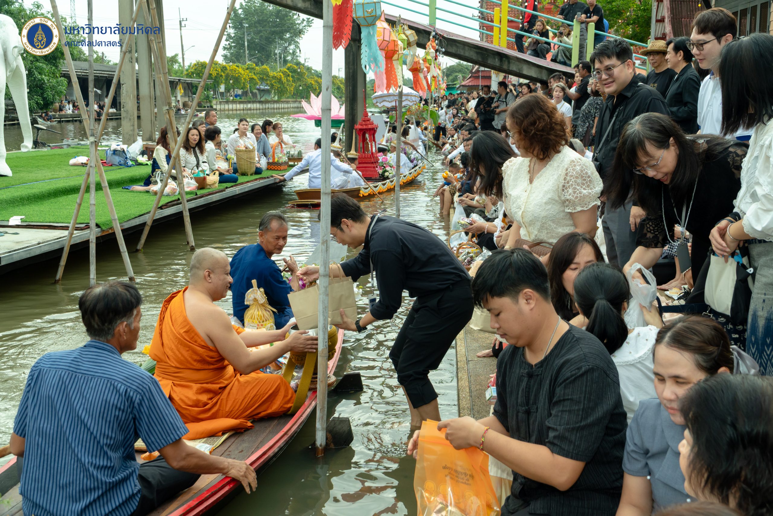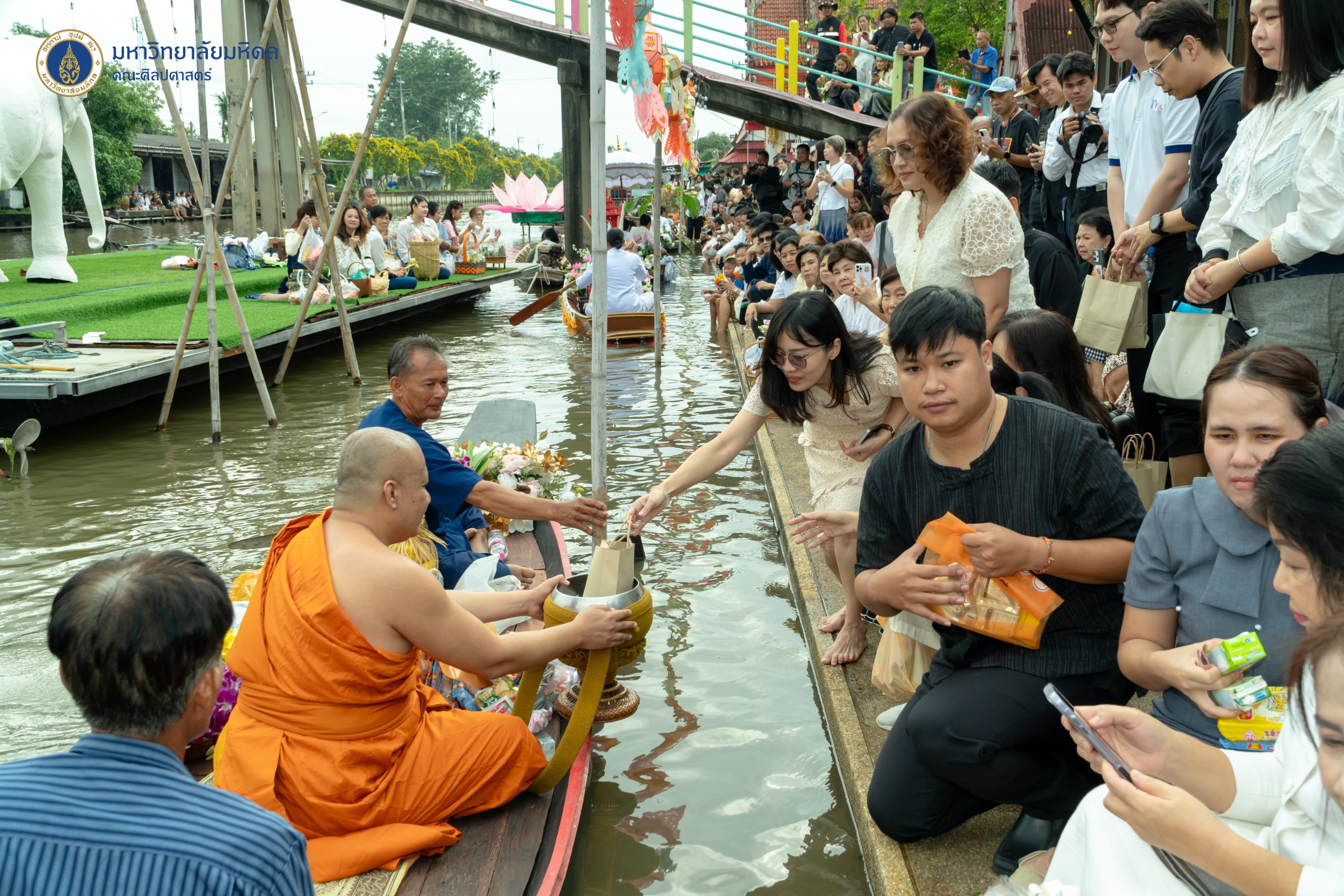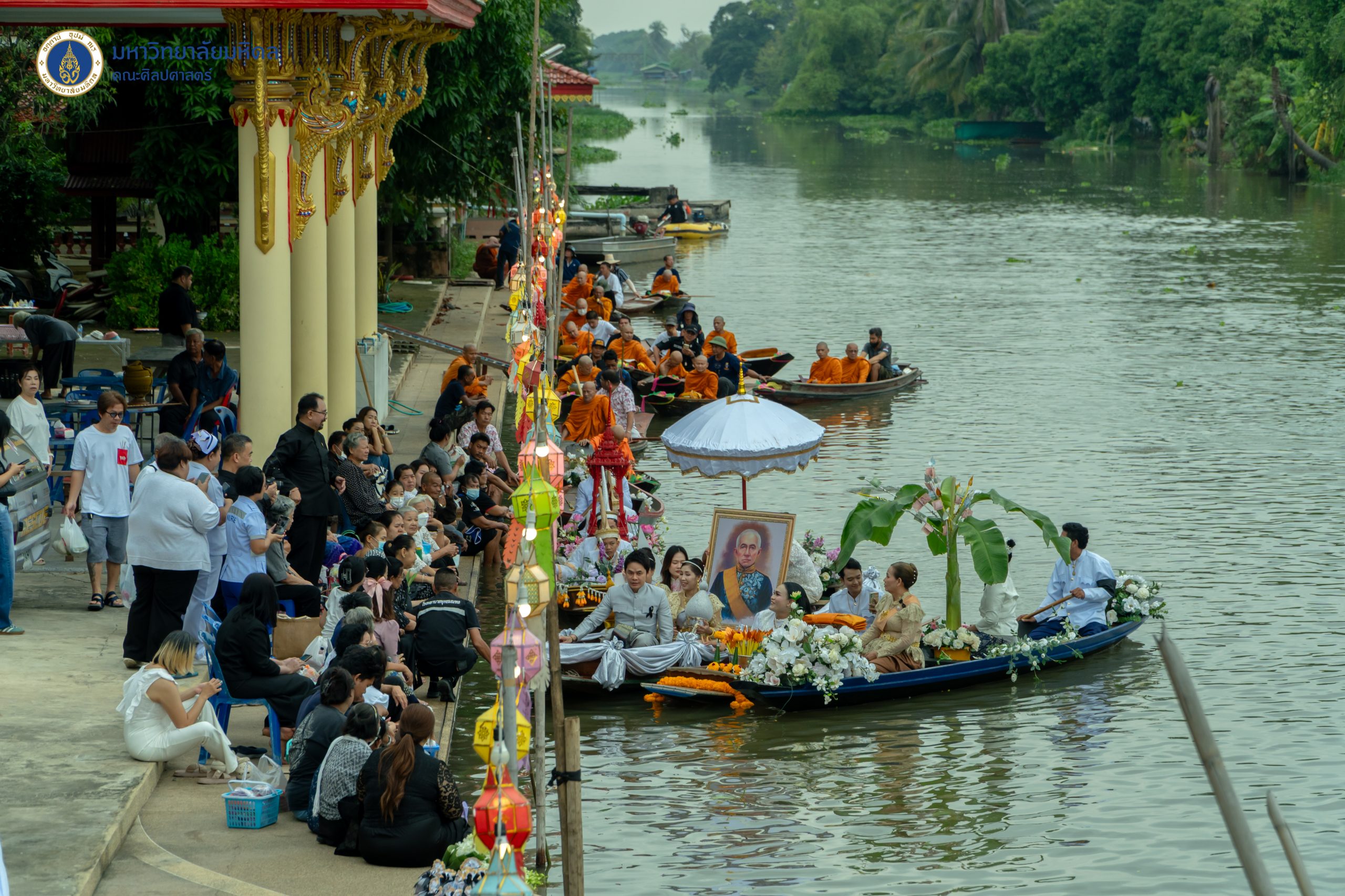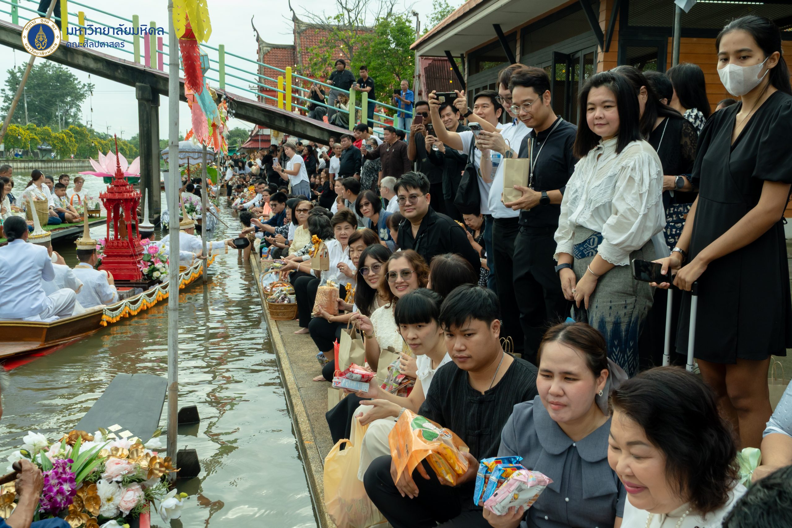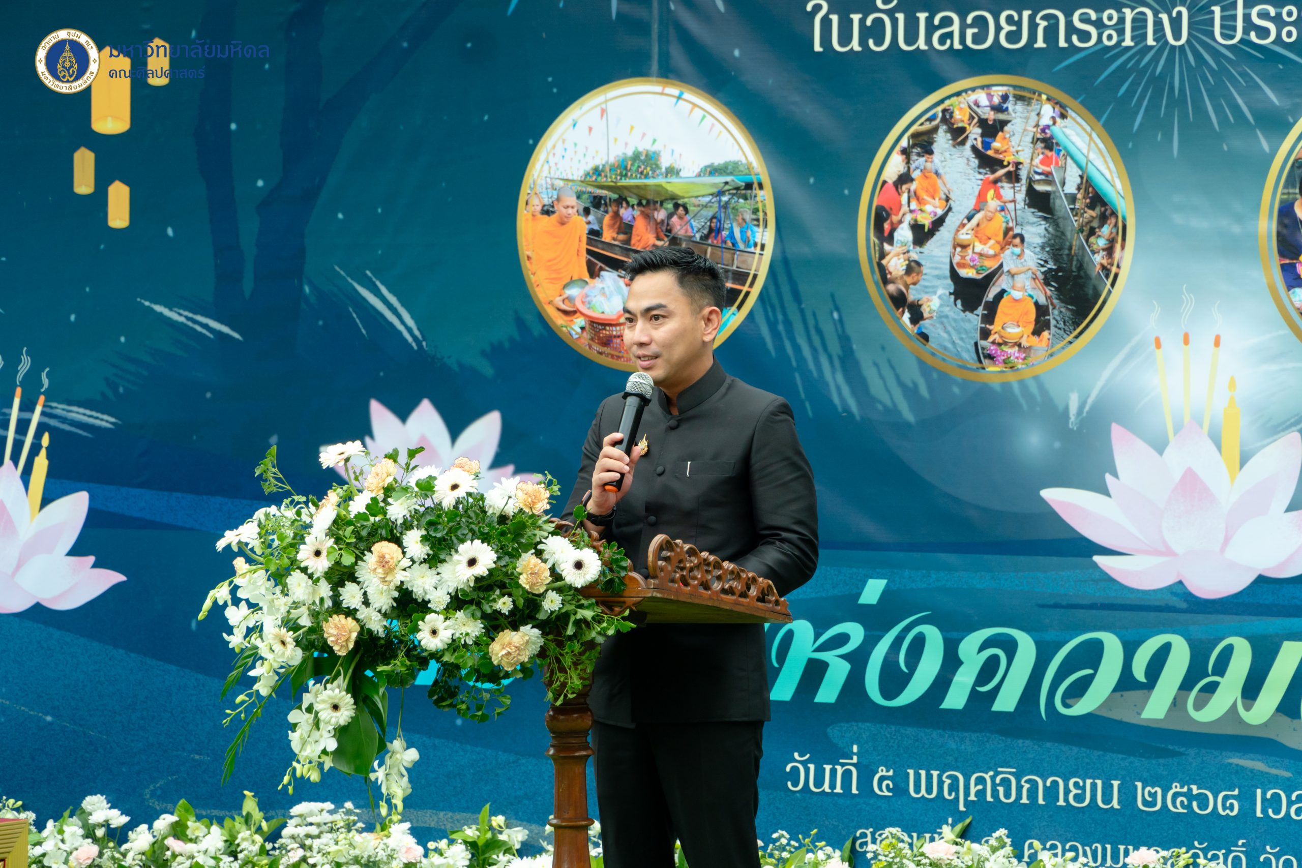ข่าว ประจำปี 2568 05/11/2025 admin วันที่ 5 พฤศจิกายน 2568 คณะศิลปศาสตร์ มหาวิทยาลัยมหิดล นำโดยผู้ช่วยศาสตราจารย์ ดร.ณัฐกาญจน์ นาคนวล รองคณบดีฝ่ายวิจัยและวิชาการเพื่อสังคม พร้อมด้วยรองศาสตราจารย์ ดร.อภิลักษณ์ เกษมผลกูล ประธานศูนย์ทรรศน์ศึกษา คณาจารย์ และเจ้าหน้าที่ เข้าร่วมงานประเพณีตักบาตรท้องน้ำและลอยกระทง ประจำปี 2568 ณ คลองมหาสวัสดิ์ วัดสุวรรณาราม ตำบลศาลายา อำเภอพุทธมณฑล จังหวัดนครปฐมการจัดงานครั้งนี้เป็นความร่วมมือระหว่างวัดสุวรรณาราม องค์การบริหารส่วนตำบลศาลายา และหน่วยงานทั้งภาครัฐและเอกชนในตำบลศาลายา เพื่อสืบสานและอนุรักษ์ขนบธรรมเนียมประเพณีไทยอันงดงาม โดยภายในงานมีกิจกรรมหลากหลาย อาทิ ประเพณีตักบาตรท้องน้ำอันเป็นเอกลักษณ์ของชุมชนริมคลองมหาสวัสดิ์ กิจกรรมเสวนา “ภาพเก่าเล่าเรื่องศาลายา” โดยรองศาสตราจารย์ ดร.อภิลักษณ์ เกษมผลกูล ประธานศูนย์สยามทรรศน์ศึกษา และคุณโสภณ เล่าอุย ที่มาร่วมบอกเล่าเรื่องราวและวิถีชีวิตของชุมชนผ่านภาพถ่ายเก่าอันทรงคุณค่านอกจากนี้ ยังมีกิจกรรมร่วมทำกระทงจากวัสดุธรรมชาติ ส่งเสริมแนวคิดการอนุรักษ์สิ่งแวดล้อมและการใช้ทรัพยากรอย่างยั่งยืน ทั้งนี้ การมีส่วนร่วมของคณะศิลปศาสตร์สะท้อนถึงความมุ่งมั่นในการส่งเสริมความสัมพันธ์อันดีกับชุมชนท้องถิ่น และร่วมสืบทอดมรดกทางวัฒนธรรมของไทยให้คงอยู่สืบไป