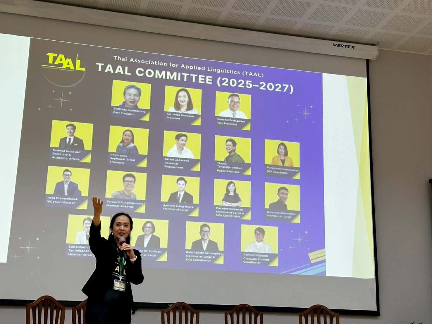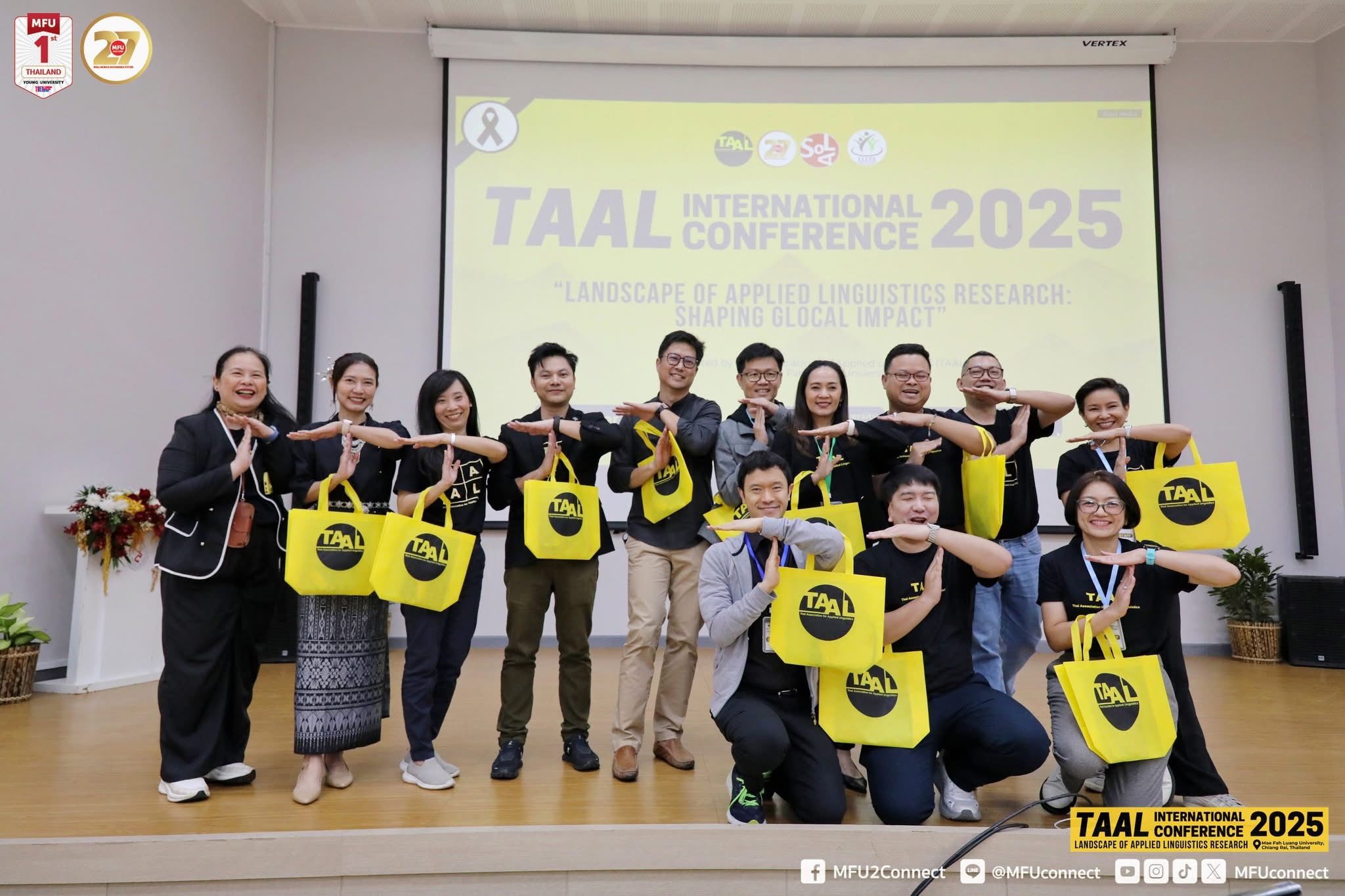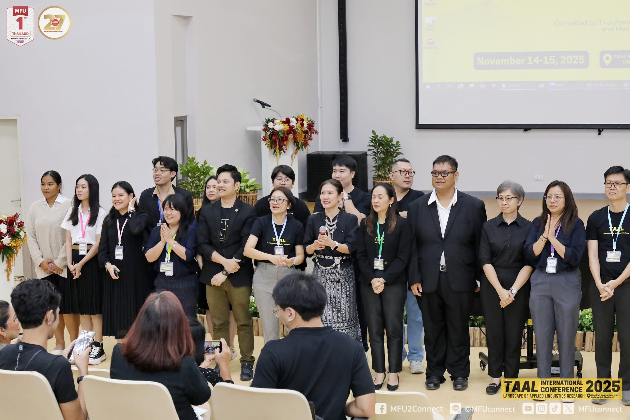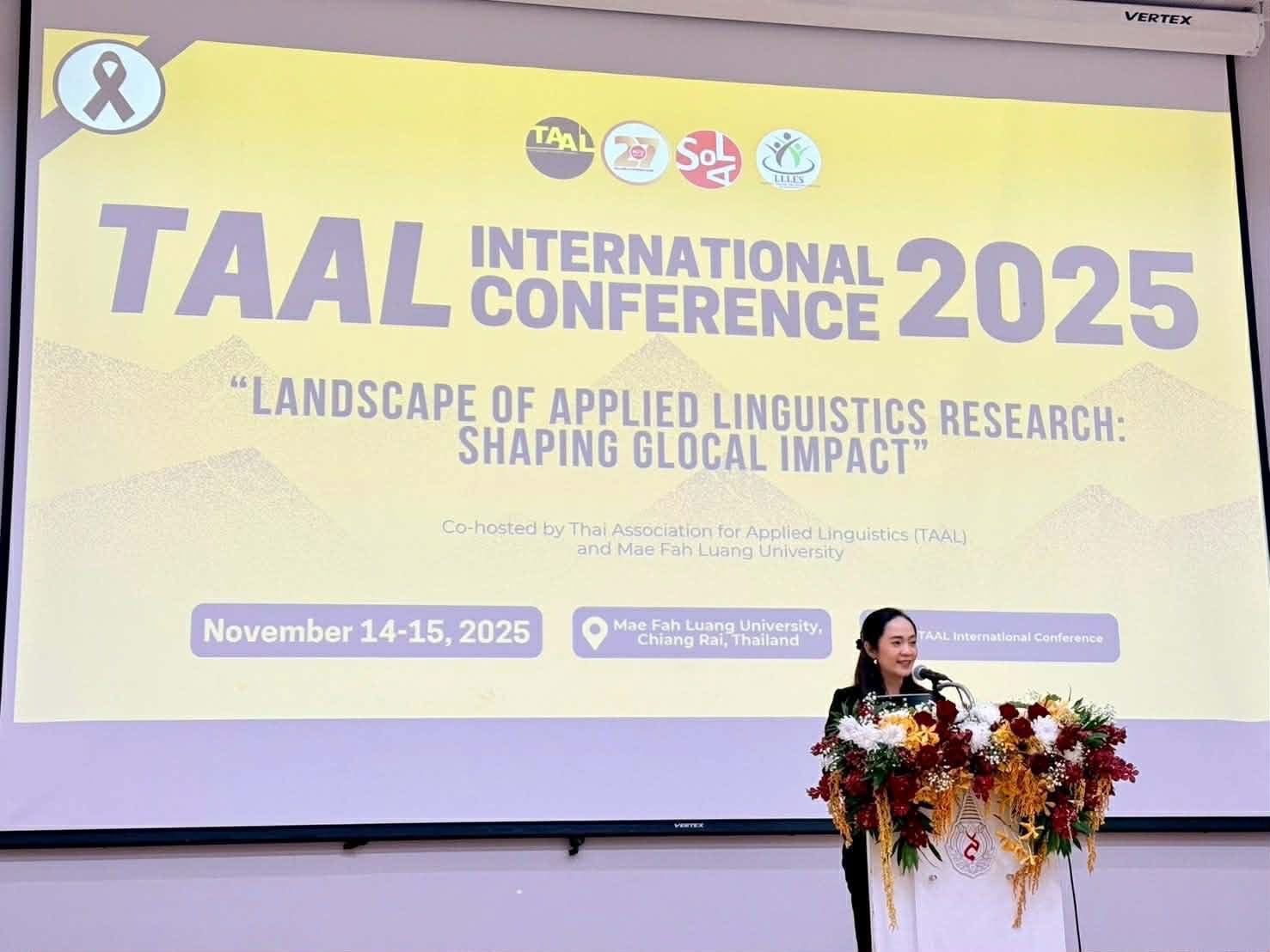 ข่าว ประจำปี 2568 14/11/2025 admin คณะศิลปศาสตร์ มหาวิทยาลัยมหิดล นำโดย ผู้ช่วยศาสตราจารย์ ดร. อภิวิชญ์ เลี้ยงอิสสระ คณบดี ผู้ทำหน้าที่ใน Scientific Committee และ Student Best Presentation Committee พร้อมด้วย ผู้ช่วยศาสตราจารย์ ดร. ณัฐกฤตา โชติภัคธนสุข รองคณบดีฝ่ายบริการการศึกษา เข้าร่วมการประชุมวิชาการนานาชาติ TAAL ครั้งที่ 2 ภายใต้หัวข้อ “Landscape of Applied Linguistic Research: Shaping GloCal Impacts” จัดโดยมหาวิทยาลัยแม่ฟ้าหลวง ร่วมกับสมาคมภาษาศาสตร์ประยุกต์ประเทศไทย ระหว่างวันที่ 14–15 พฤศจิกายน 2568 ณ จังหวัดเชียงรายการเข้าร่วมงานในครั้งนี้สะท้อนบทบาทเชิงรุกของคณะศิลปศาสตร์ มหาวิทยาลัยมหิดล ในฐานะผู้นำด้านภาษาศาสตร์ประยุกต์ ที่มุ่งพัฒนาการเรียนการสอนและการวิจัยด้วยองค์ความรู้สมัยใหม่ พร้อมผลักดันผลงานวิชาการสู่สังคมไทยและเวทีนานาชาติอย่างต่อเนื่องกิจกรรมสำคัญภายในงาน• การบรรยายจากผู้ทรงคุณวุฒิระดับนานาชาติ เช่น• Kevin W. H. Tai [The University of Hong Kong, Hong Kong SAR] – Unlocking the Affordance of Translanguaging Spaces• Shirley N. Dita [De la Salle University, the Philippines]– Grammatical Innovations in Philippine English• การนำเสนอผลงานวิจัยแบบขนาน (Parallel Sessions)• เวทีเสวนาอาเซียน (ASEAN Forum)• การมอบรางวัล Student Best Presentation Awardประเด็นวิจัยที่หลากหลาย ครอบคลุมตั้งแต่• การสอนภาษาอังกฤษในฐานะภาษาต่างประเทศ• ภาษาศาสตร์คลังข้อมูล• การวิเคราะห์วาทกรรม• ภาษาศาสตร์สังคม• เทคโนโลยีและ AI เพื่อการเรียนการสอนภาษา• การใช้ภาษาในบริบทพหุภาษาและพหุวัฒนธรรมคณะศิลปศาสตร์ มหาวิทยาลัยมหิดล ยังคงมุ่งมั่นต่อยอดความร่วมมือด้านวิจัยและวิชาการทั้งในประเทศและต่างประเทศ เพื่อสร้างผลกระทบทางวิชาการที่มีคุณค่าแก่สังคมไทยและโลก