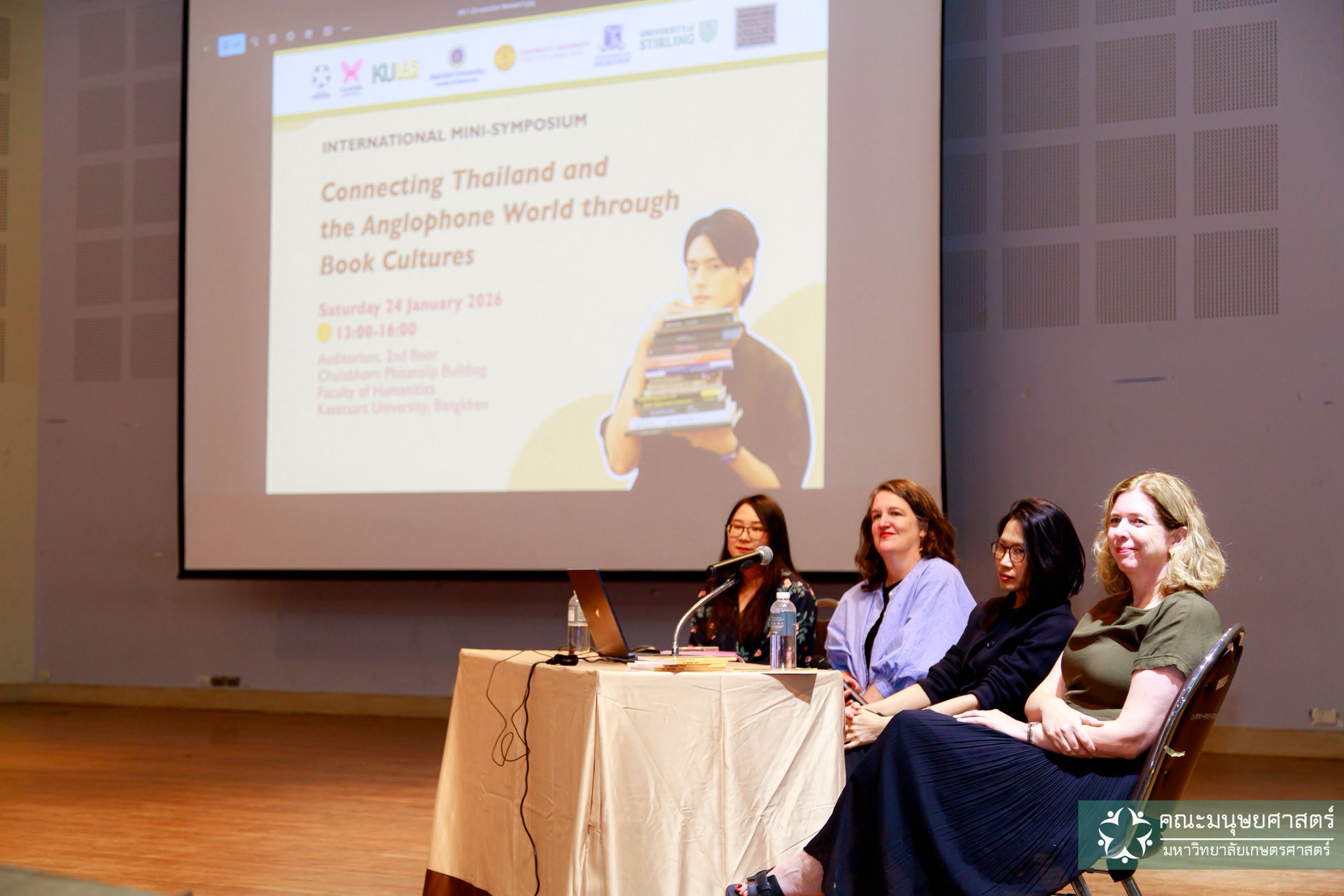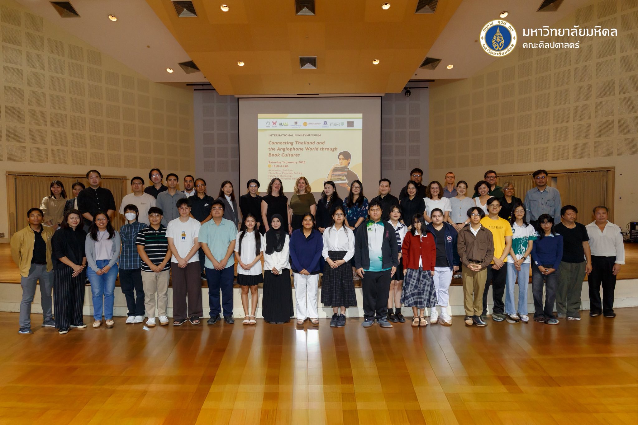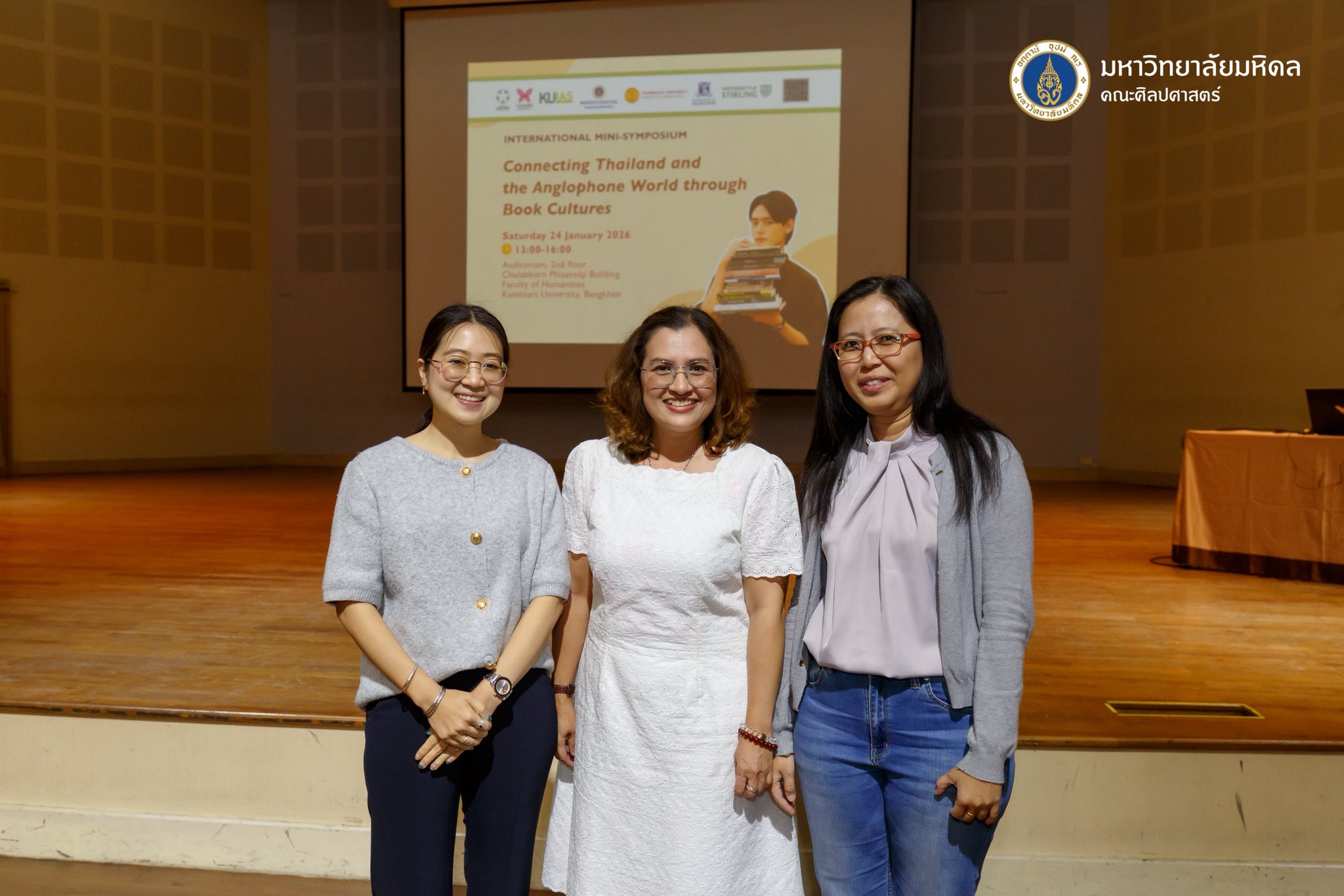 วันที่ 24 มกราคม 2569 คณะศิลปศาสตร์ นำโดยผู้ช่วยศาสตราจารย์ ดร.ณัฐกาญจน์ นาคนวล รองคณบดีฝ่ายวิจัยและวิชาการเพื่อสังคม อาจารย์ ดร.ณัฐนี สัจนวกุล ผู้ช่วยคณบดีฝ่ายส่งเสริมวิชาการและเครือข่ายสัมพันธ์ และอาจารย์ ดร.กรกช แพทย์สาสดี อาจารย์ประจำหลักสูตรศิลปศาสตรบัณฑิต สาขาวิชาภาษาอังกฤษ เข้าร่วมงานประชุมวิชาการนานาชาติ (International Mini-symposium) “Connecting Thailand and the Anglophone World through Book Cultures” ณ ห้องประชุมและแสดงดนตรี ชั้น 2 อาคารจุฬาภรณ์พิศาลศิลป์ คณะมนุษยศาสตร์ มหาวิทยาลัยเกษตรศาสตร์ บางเขน ซึ่งงานประชุมดังกล่าวเกิดจากความร่วมมือทางวิชาการระหว่างคณะมนุษยศาสตร์ โดยฝ่ายวิจัยและสร้างสรรค์ และศูนย์วิทยาการขั้นสูงด้านมนุษยศาสตร์และสังคมศาสตร์ประยุกต์ สถาบันวิทยาการขั้นสูงแห่งมหาวิทยาลัยเกษตรศาสตร์ ร่วมกับ คณะศิลปศาสตร์ มหาวิทยาลัยมหิดล คณะศิลปศาสตร์ มหาวิทยาลัยธรรมศาสตร์ University of Stirling University of Melbourne และ Society for the History of Authorship, Reading and Publishing (SHARP)