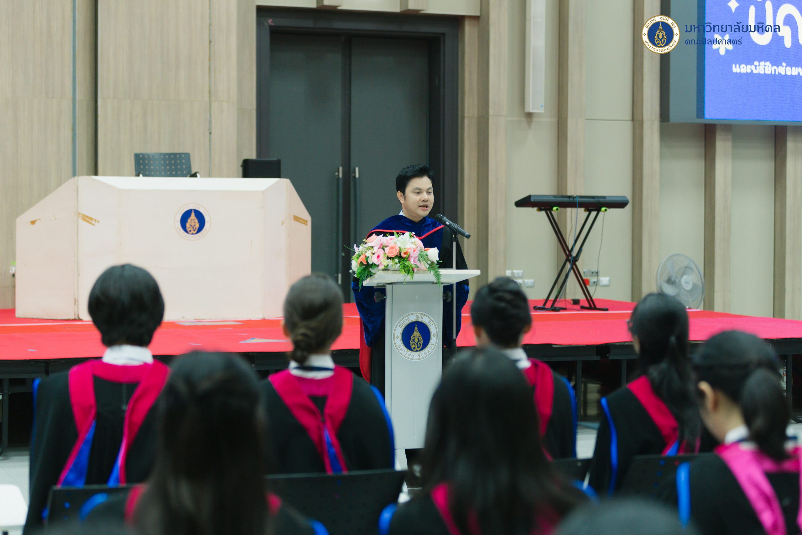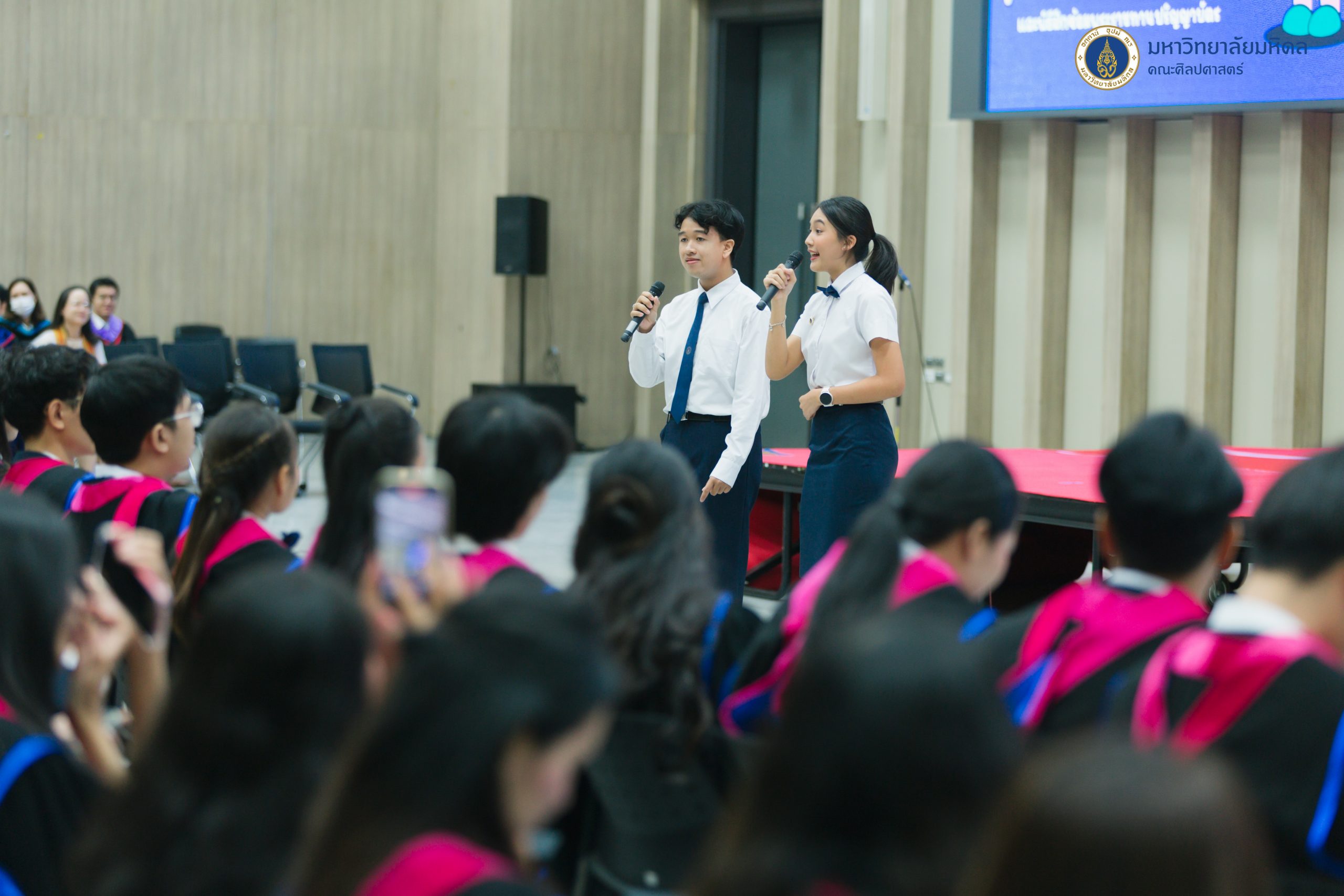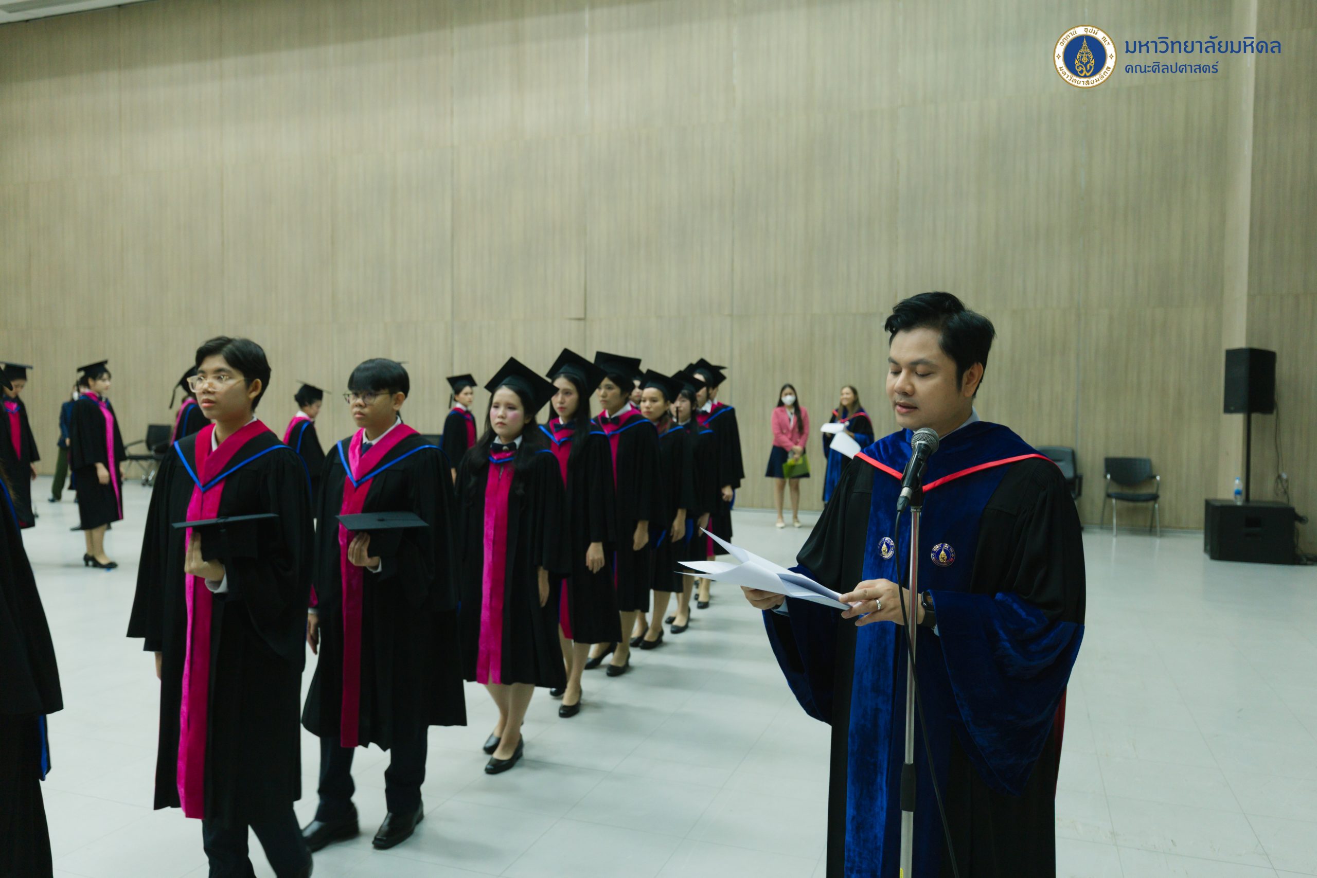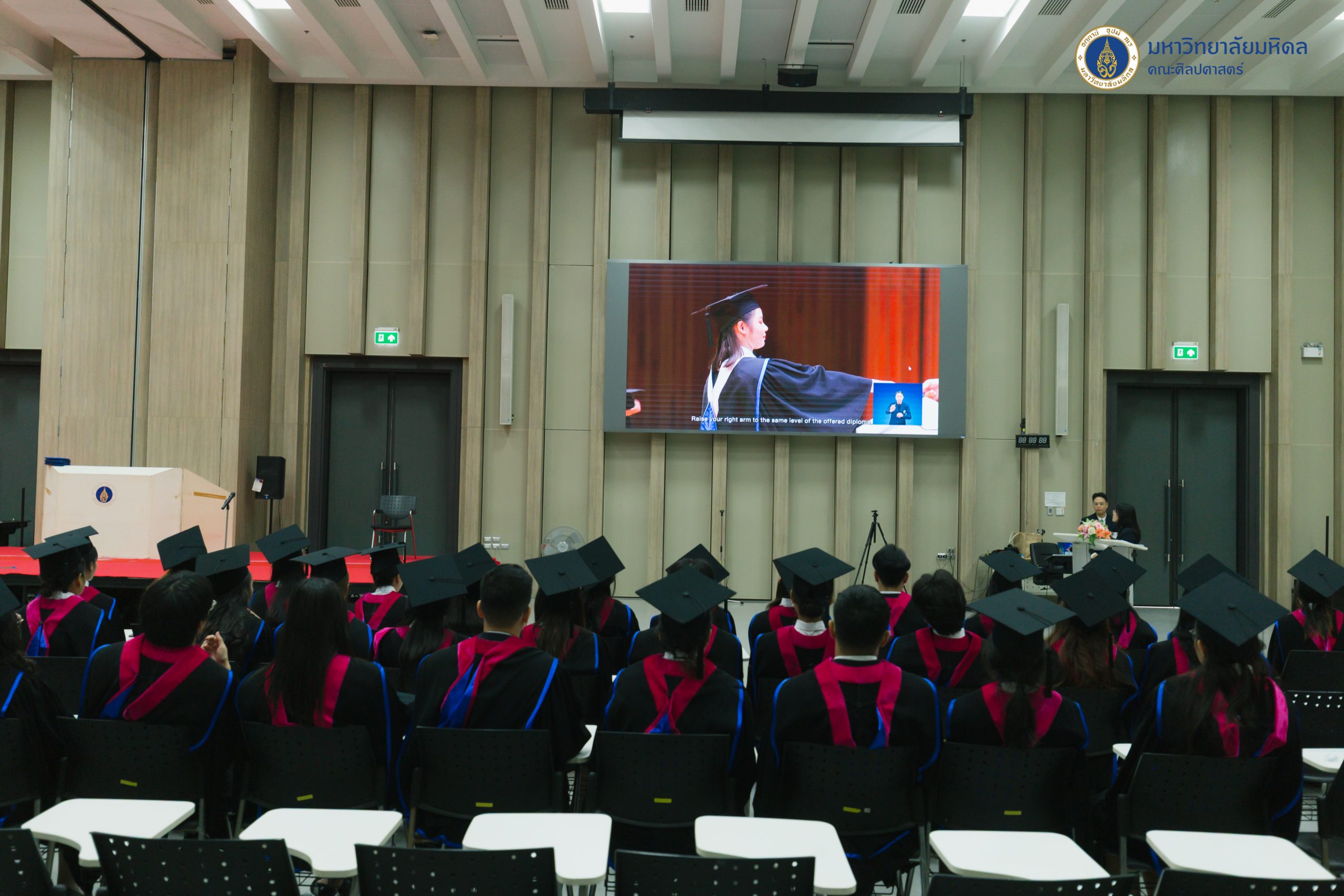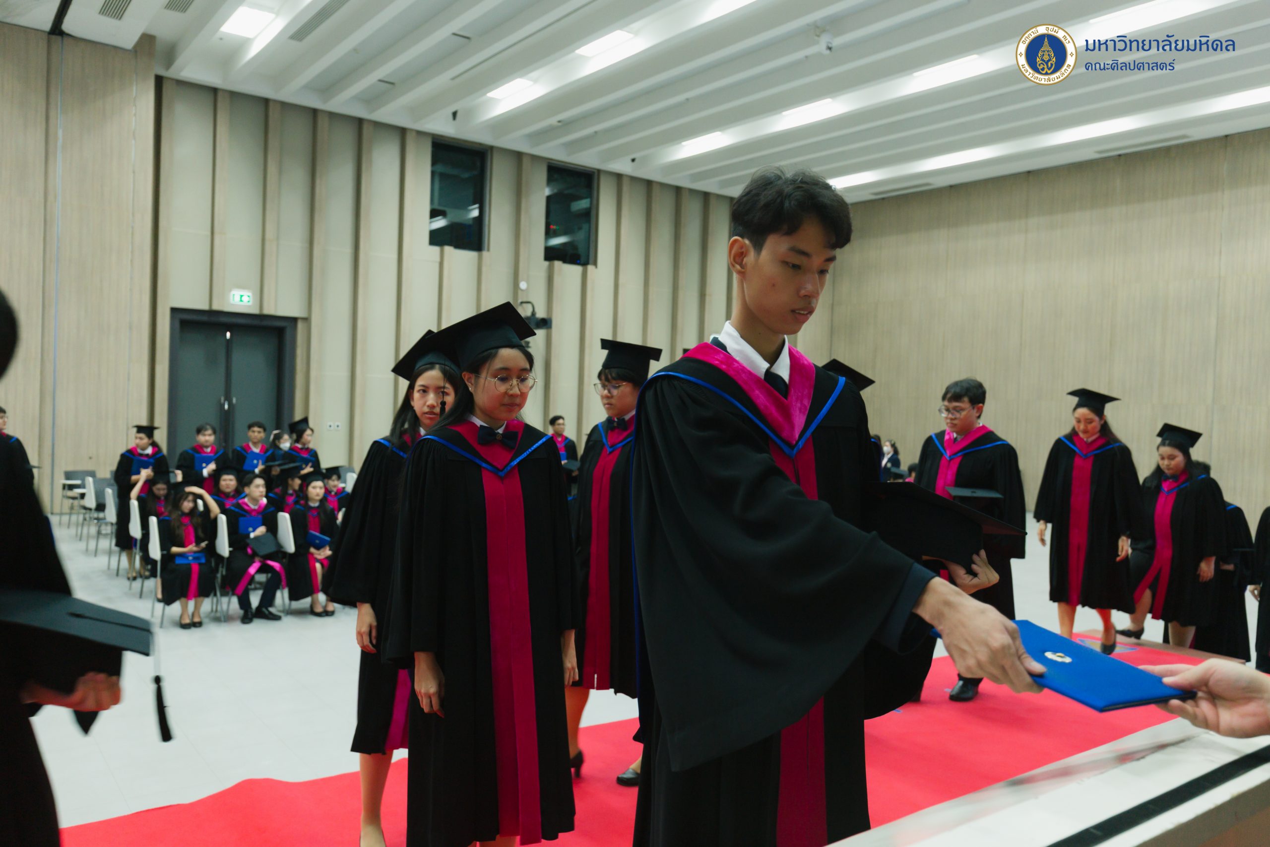 พิธีเปิดได้รับเกียรติจากผู้ช่วยศาสตราจารย์ ดร.อภิวิชญ์ เลี้ยงอิสสระ คณบดีคณะศิลปศาสตร์ เป็นประธานเปิดงานและกล่าวให้โอวาทแก่บัณฑิต จากนั้นเป็นการกล่าวอวยพรบัณฑิตโดยคณะผู้บริหารคณะศิลปศาสตร์ การรับชมวีดิทัศน์แสดงความยินดีจากคณาจารย์ และรุ่นน้องนักศึกษา ตัวแทนบัณฑิตกล่าวสุนทรพจน์โดยนางสาวกนกร กามูณี บัณฑิตหลักสูตรศิลปศาสตรบัณฑิต สาขาวิชาภาษาไทย และกิจกรรมเขียนจดหมาถึงตัวเองในอนาคต จากนั้นเป็นการฝึกซ้อมเข้ารับพระราชทานปริญญาบัตร คณะศิลปศาสตร์ มหาวิทยาลัยมหิดล ทั้งนี้กำหนดการรับพระราชทานปริญญาบัตร ประจำปีการศึกษา 2567 จะจัดขึ้นในวันที่ 9 – 10 ตุลาคม 2568