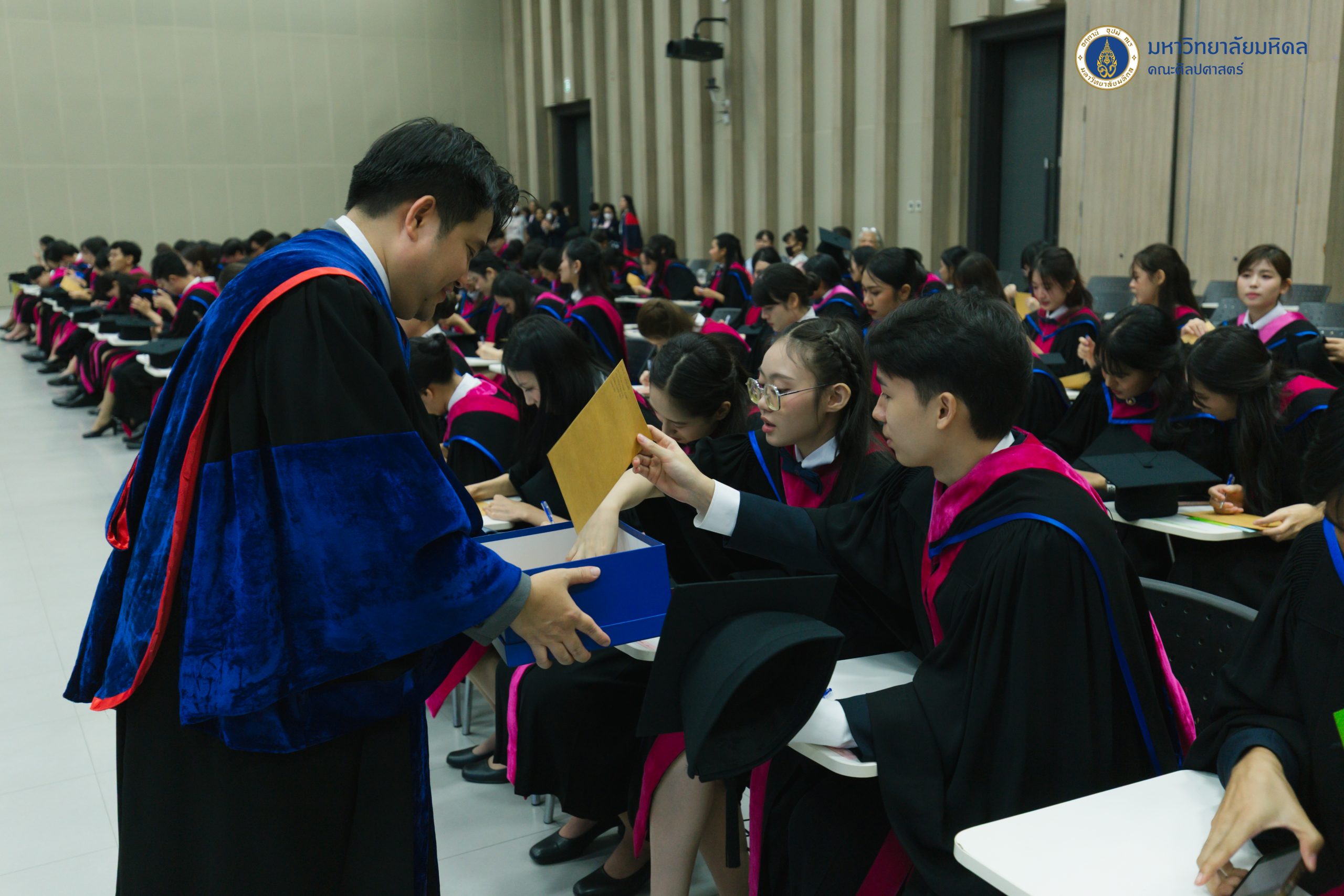โดยบัณฑิตคณะศิลปศาสตร์ จะเข้ารับพระราชทานปริญญาบัตรในวันศุกร์ที่ 10 ตุลาคม 2568 (รอบบ่าย) ณ หอประชุมมหิดลสิทธาคาร มหาวิทยาลัยมหิดล ศาลายา