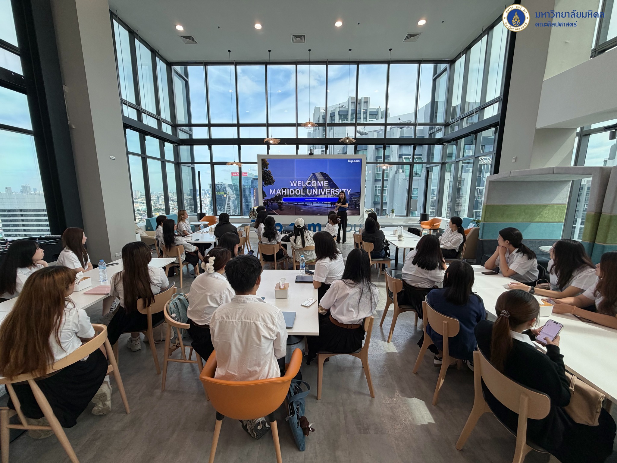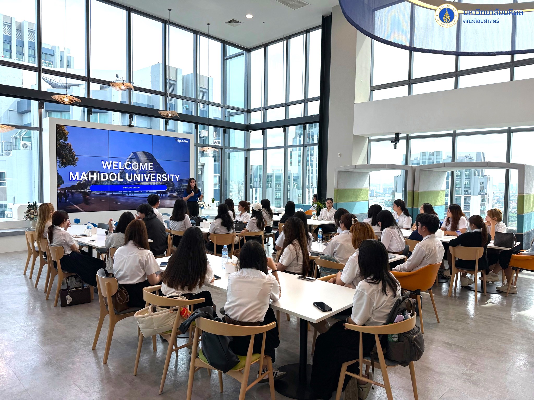 ข่าว ประจำปี 2568 08/10/2025 admin วันที่ 8 ตุลาคม 2568 คณะศิลปศาสตร์ นำโดยอาจารย์ ดร.วาเรศ รัตนวิสาลนนท์ อาจารย์ผู้รับผิดชอบรายวิชา LACH 422 China’s Online Business สาขาวิชาภาษาจีน (นานาชาติ) และอาจารย์ ดร.ยุวดี ถิรธราดล อาจารย์ประจำหลักสูตรฯ นำนักศึกษาในรายวิชาฯ จำนวน 29 คน เข้าเยี่ยมชมศึกษาดูงาน ณ บริษัท Trip.com Group ซึ่งเป็นแพลตฟอร์มการท่องเที่ยวออนไลน์ชั้นนำระดับโลก โดยได้รับเกียรติจากคุณฤดีพรรณ เต็มชื่น ผู้อำนวยการภูมิภาคฝ่ายการตลาดและความสัมพันธ์ภาครัฐ บริษัท Trip.com Group ให้การต้อนรับในการศึกษาดูงานครั้งนี้ นักศึกษาจะได้รับความรู้เกี่ยวกับรูปแบบแอปพลิเคชันที่พัฒนามาจาก Ctrip ของจีน พร้อมทั้งฟังก์ชันและจุดเด่นของแอปพลิเคชัน เช่น TripGenie ระบบปัญญาประดิษฐ์ที่ช่วยวางแผนการท่องเที่ยว และ Entertainment Tourism ที่ตอบโจทย์ไลฟ์สไตล์นักท่องเที่ยวยุคใหม่ นอกจากนี้ยังได้เรียนรู้เกี่ยวกับปุ่ม SOS ในแอปพลิเคชัน Ctrip ที่ออกแบบมาตามพฤติกรรมของนักท่องเที่ยวชาวจีน อีกทั้งได้รับความรู้เกี่ยวกับกลยุทธ์การดำเนินธุรกิจของ Trip.com ที่มุ่งเน้นคุณภาพผลิตภัณฑ์และการบริการลูกค้าเป็นหลัก รวมถึงการให้ความสำคัญกับการพัฒนาบุคลากรอย่างต่อเนื่อง ในโอกาสนี้ทางบริษัทยังเปิดโอกาสให้นักศึกษาในหลักสูตรฯ ได้เข้าสมัครฝึกงานและสมัครงานอีกด้วย