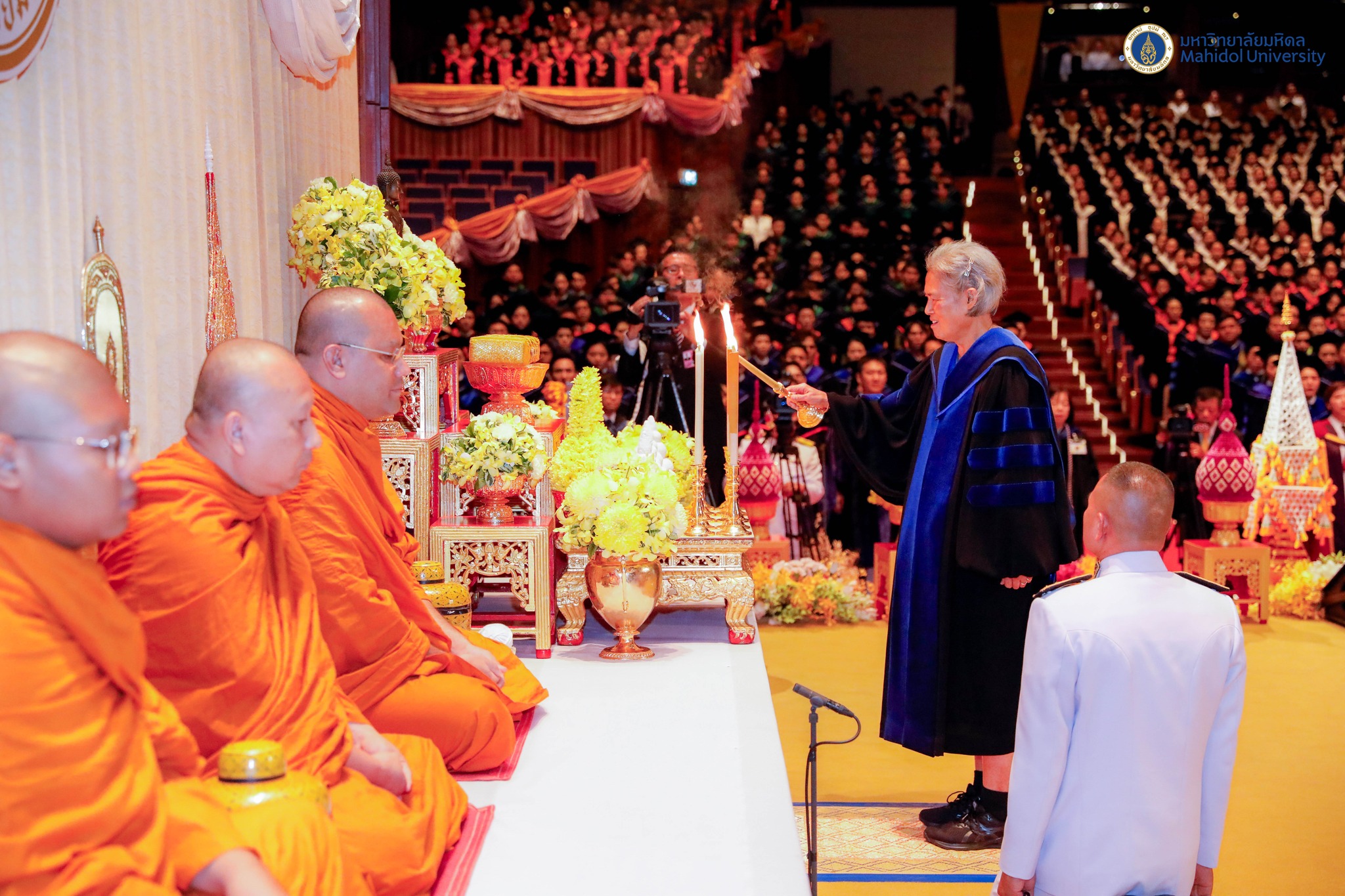 ภายหลังพิธีพระราชทานปริญญาบัตร สมเด็จพระกนิษฐาธิราชเจ้า กรมสมเด็จพระเทพรัตนราชสุดา ฯ สยามบรมราชกุมารี พระราชทานพระราโชวาทแก่บัณฑิตมหาวิทยาลัยมหิดล และทอดพระเนตรการแสดงดนตรีจากวิทยาลัยดุริยางคศิลป์ มหาวิทยาลัยมหิดล ซึ่งเป็นการแสดงเพื่อเผยแพร่พระอัจฉริยภาพด้านดนตรีของพระบาทสมเด็จพระบรมชนกาธิเบศรมหาภูมิพลอดุลยเดชมหาราช บรมนาถบพิตร และสืบสานบทเพลงพระราชนิพนธ์ที่ทรงคุณค่ายิ่งของปวงชนชาวไทย การแสดงเริ่มต้นด้วยวงขับร้องประสานเสียงในรูปแบบอะแคปเปลลา (A cappella) บทเพลง “ลมหนาว” โดย Mahidol University Vocal Ensemble เพื่อสร้างบรรยากาศแห่งความงดงาม อ่อนโยน ลำดับต่อมา เป็นการขับร้องบทเพลงพระราชนิพนธ์ “H.M. Blues” โดย Cherryl J. Hayes อาจารย์ ประจำวิทยาลัยดุริยางคศิลป์ นักร้องแจ๊สผู้มีชื่อเสียงระดับนานาชาติ เป็นผู้ถ่ายทอดบทเพลงอย่างมีชีวิตชีวาและเข้าถึงอารมณ์ด้วยเทคนิคการร้องที่เป็นเอกลักษณ์ การบรรเลงใช้รูปแบบวงผสมประกอบด้วย Jazz Combo, Brass Section และวงขับร้องประสานเสียงในแนว Gospel และบทเพลงพระราชนิพนธ์ “Still on My Mind” เป็นการบรรเลงและขับร้องร่วมกันทั้งวง เพื่อเทิดพระเกียรติและถวายความจงรักภักดี