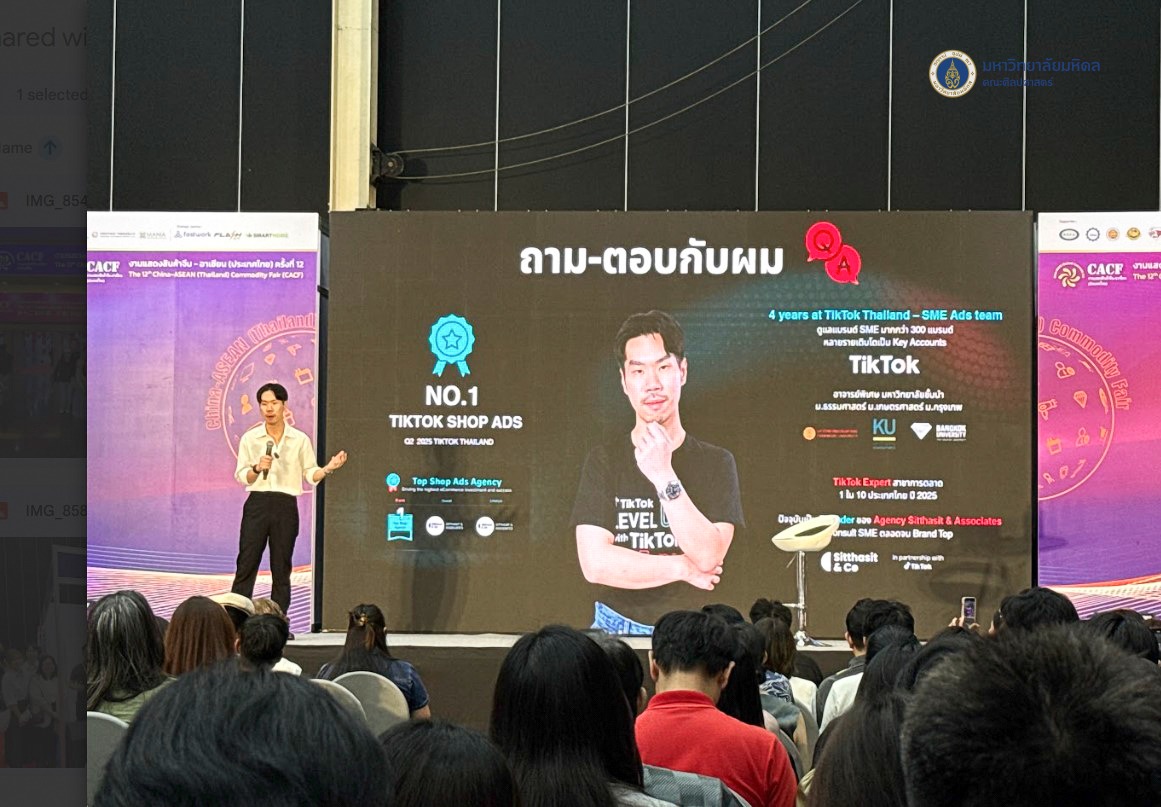 ข่าว ประจำปี 2568 18/09/2025 admin วันที่ 18 กันยายน 2568 อาจารย์ ดร.วาเรศ รัตนวิสาลนนท์ อาจารย์ผู้รับผิดชอบรายวิชา LACH422: China’s Online Business นำนักศึกษาชั้นปีที่ 4 หลักสูตรศิลปศาสตรบัณฑิต สาขาวิชาภาษาจีน (หลักสูตรนานาชาติ) เข้าร่วมงาน China‑ASEAN (Thailand) Commodity Fair – CACF ครั้งที่ 12 ณ Hall 99 ศูนย์นิทรรศการและการประชุมไบเทค บางนา กรุงเทพมหานครโดยกิจกรรมดังกล่าวนักศึกษาได้เข้าร่วมกิจกรรม• ฟังเสวนา “หมัดฮุก รุกขาดลูกค้ายุคดิจิทัล” โดย คุณ CK จาก Fastwork• ร่วม Mini Workshop “เริ่มต้นหาเงินแสน ด้วยมือถือแค่เครื่องเดียว”• เดินสำรวจโซลูชัน Cross‑border E‑commerce และนวัตกรรมการค้าออนไลน์จีน‑อาเซียน• แลกเปลี่ยนมุมมองเรื่องการประยุกต์ใช้ AI สำหรับธุรกิจ SME และการสร้าง ecosystem ทางการค้าซึ่งกิจกรรมครั้งนี้เป็นการเปิดโลกการเรียนรู้เชิงประสบการณ์จากผู้เชี่ยวชาญและผู้ประกอบการจริง ช่วยเชื่อมโยงองค์ความรู้ในห้องเรียนสู่การปฏิบัติ และต่อยอดทักษะด้าน E-commerceและ Digital Marketing ของนักศึกษาขอขอบคุณผู้จัดงาน CACF‑THAILAND และพันธมิตรที่เอื้อเฟื้อโอกาสการเรียนรู้นอกหลักสูตรให้แก่นักศึกษาของเรา