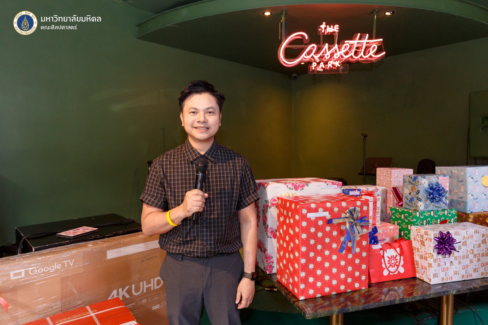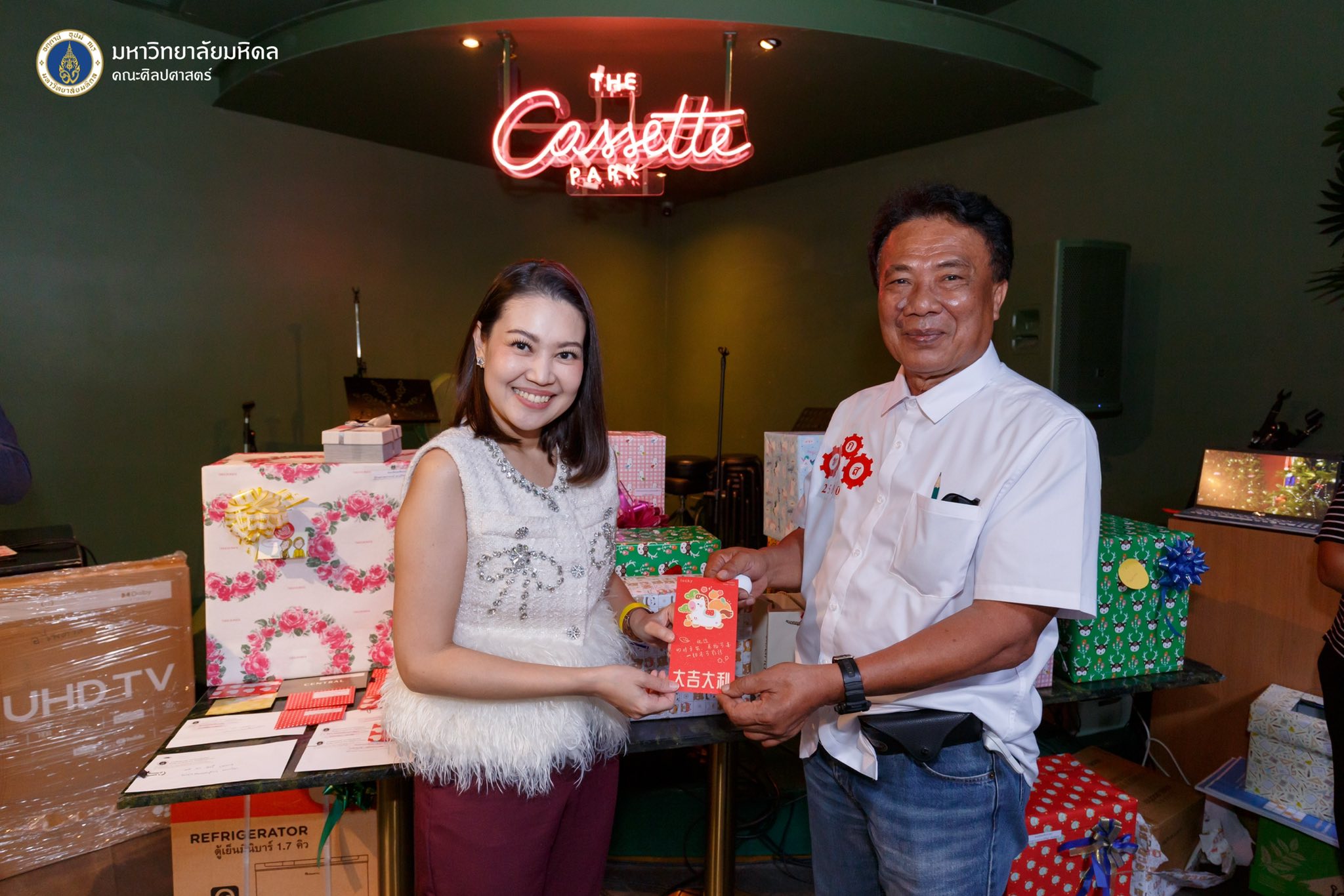 ข่าว ประจำปี 2568 25/12/2025 admin วันที่ 25 ธันวาคม 2568 คณะศิลปศาสตร์ จัดโครงการสานสัมพันธ์บุคลากร เนื่องในวันขึ้นปีใหม่ ประจำปี พ.ศ. 2569 ภายใต้ธีม “back to the 80’s Retro Motion” ณ ร้านอาหาร The Cassette ราชพฤกษ์ โดยได้รับเกียรติจากผู้ช่วยศาสตราจารย์ ดร.อภิวิชญ์ เลี้ยงอิสสระ คณบดีคณะศิลปศาสตร์ เป็นประธานกล่าวเปิดโครงการฯ และกล่าวอวยพรเนื่องในโอกาสวันขึ้นปีใหม่แก่บุคลากรภายในงานมีกิจกรรมสันทนาการกระชับความสัมพันธ์ และกิจกรรมจับฉลากของขวัญจากผู้บริหารและบุคลากร โดยมีวัตถุประสงค์เพื่อเสริมสร้างความสัมพันธ์ ความรัก และความสามัคคี ตลอดจนสร้างขวัญและกำลังใจแก่บุคลากรในคณะศิลปศาสตร์