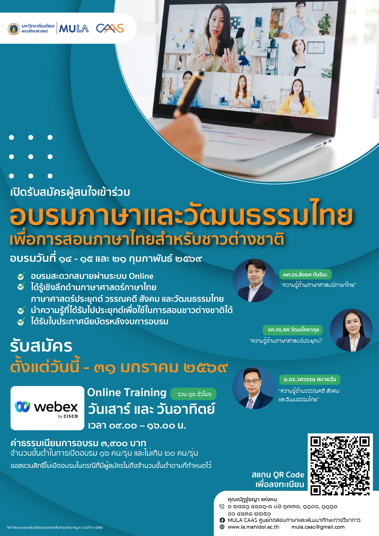 • ระยะเวลาการอบรม 14 – 15 และ 21 กุมภาพันธ์ 2569